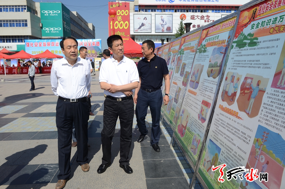 天天天水日16日11时讯 【记者 杨璟】今年6月是全国第十五个“安全生产月”,主题是“强化发展安全观念,提升全民安全素质”。为进一步加强安全生产宣传教育工作,6月16日上午,我市在龙城广场组织开展了2016年“全国安全生产月”咨询日活动。市人大常委会副主任张仲康,市政协副主席安志宏参加活动。