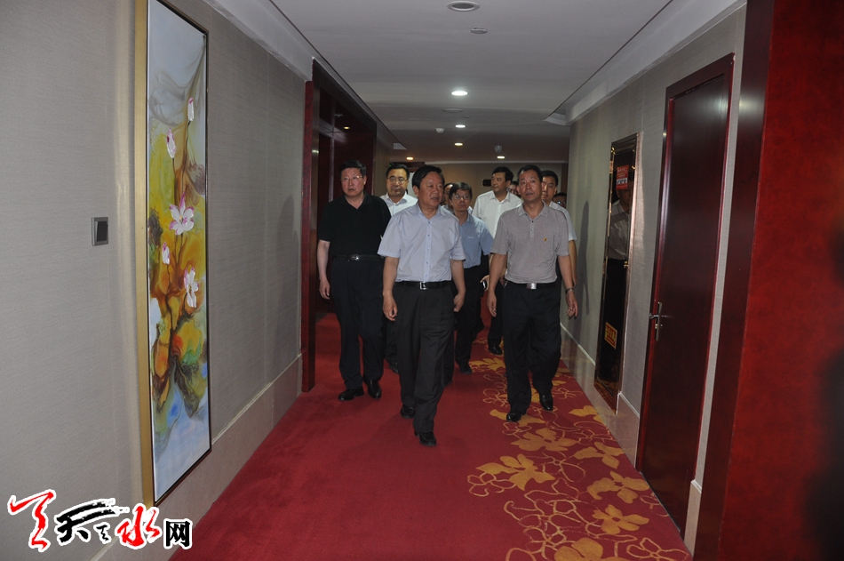 在承担来宾接待任务的麦积区地质宾馆和怡欣阁酒店,杨维俊一行分别对客房、会见厅、餐厅的筹备服务工作进行了察看指导。