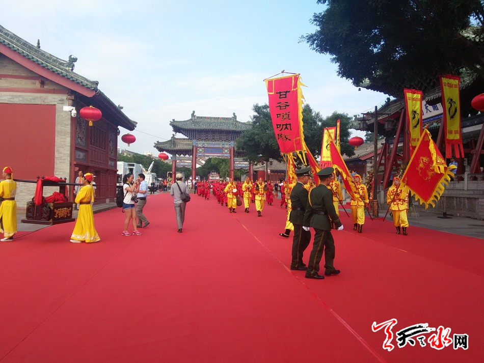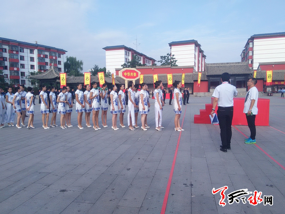 天天天水网22日8时讯【记者 何慧娟】6月22日上午8时,一年一度的公祭伏羲大典即将开启。在伏羲城内,唢呐阵阵,锣鼓声鸣。最后的彩排工作正在紧张而有序地进行中,所有工作人员都已经准备就绪,带着虔诚和激动迎一场盛大的典礼。