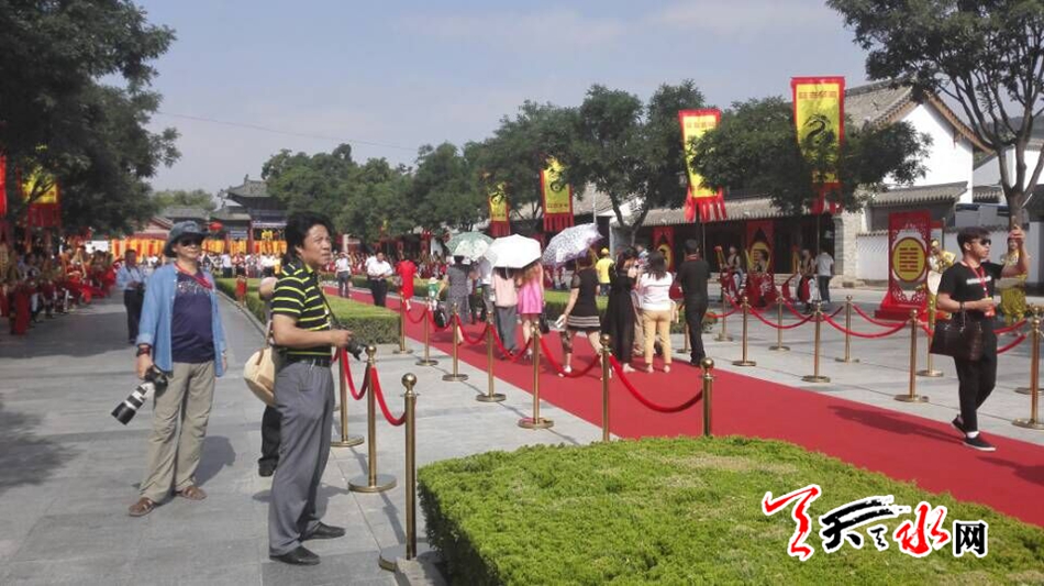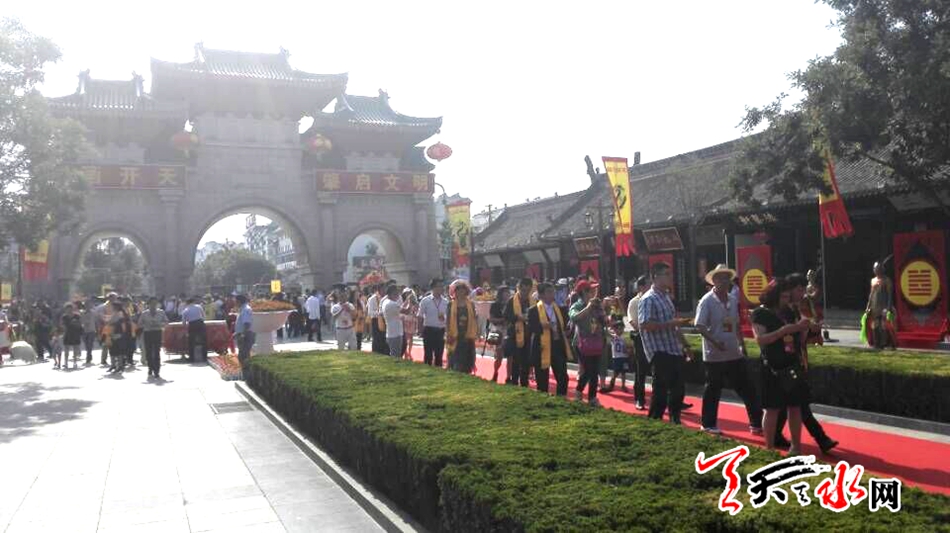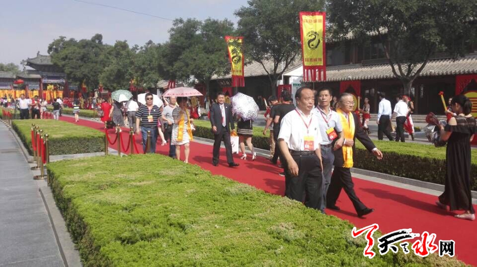 天天天水网22日9时讯【记者 张文都】6月22日,天空碧净,暖阳普照。参加2016(丙申)年公祭中华人文始祖伏羲大典的宾客怀着一份虔诚敬仰的心情,秩序井然地走进伏羲公祭大典现场,出席9点50开幕的人文始祖伏羲庆典。
