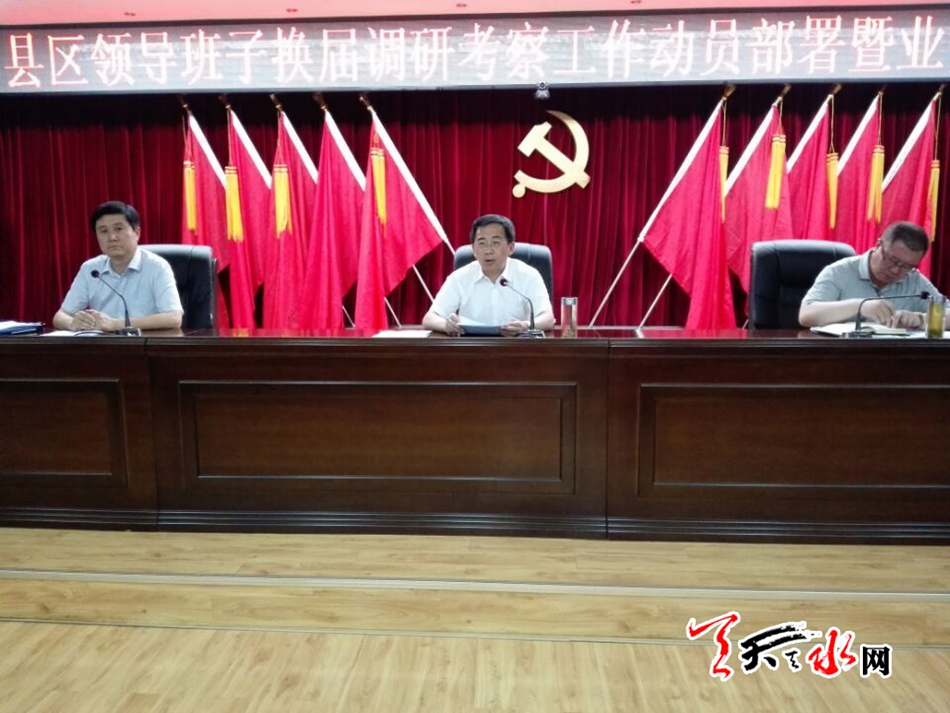 天天天水网讯【记者 李欣桐】6月21日下午, 我市召开县区领导班子换届调研考察工作动员部署暨业务培训会,深入学习领会中央、省、市委关于换届工作的有关政策精神,对县区换届调研考察工作进行安排部署。市委常委、组织部长王光庆出席会议并讲话。