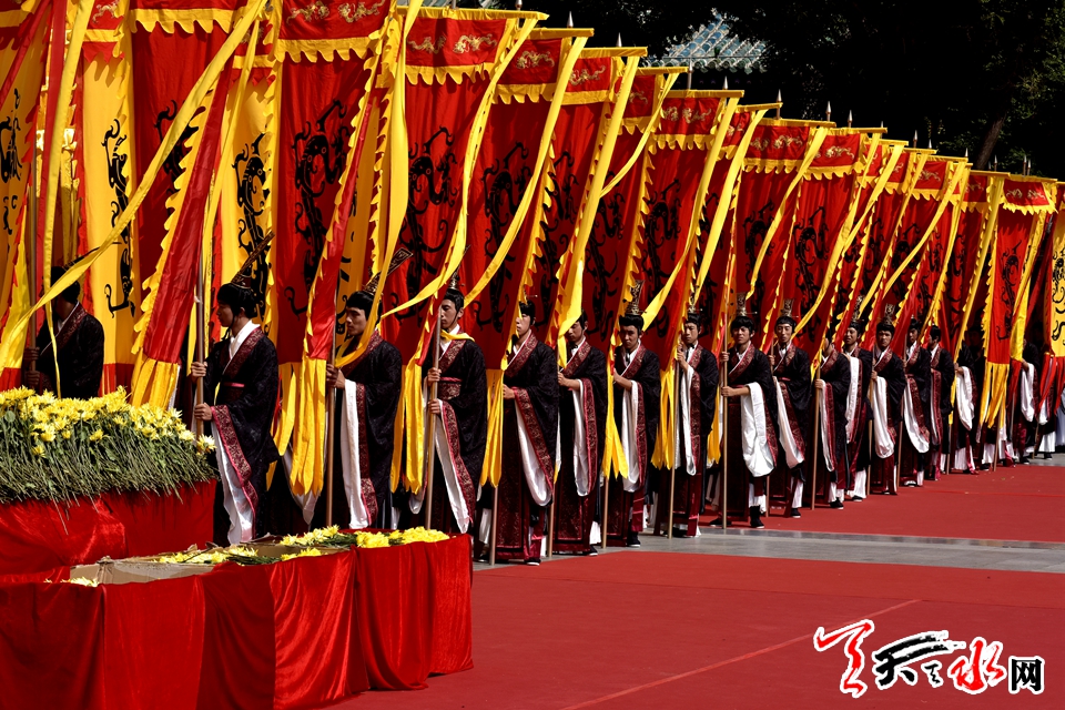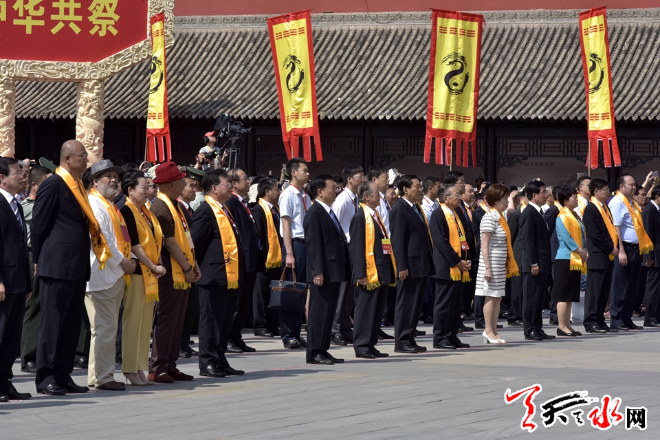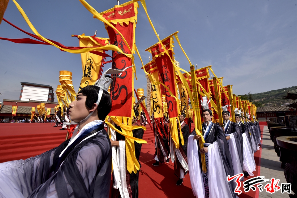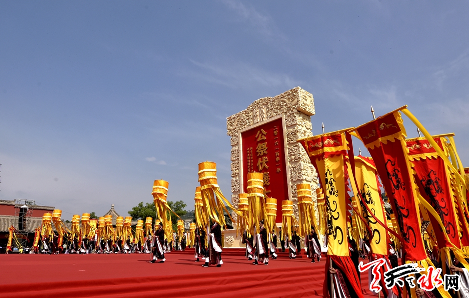 天天天水网讯(记者 郝勤学 何永德)6月22日上午,伏羲广场旗幡招展,钟鼓巍巍,气势恢弘;伏羲庙内古柏森林,雅乐悠扬,庄严肃穆。以“同祖同脉,中华共祭”为主题,由国务院港澳事务办公室、国务院台湾事务办公室、中华全国归国华侨联合会、甘肃省人民政府共同主办,天水市人民政府承办的2016(丙申)年公祭中华人文始祖太昊伏羲大典在这里隆重举行。