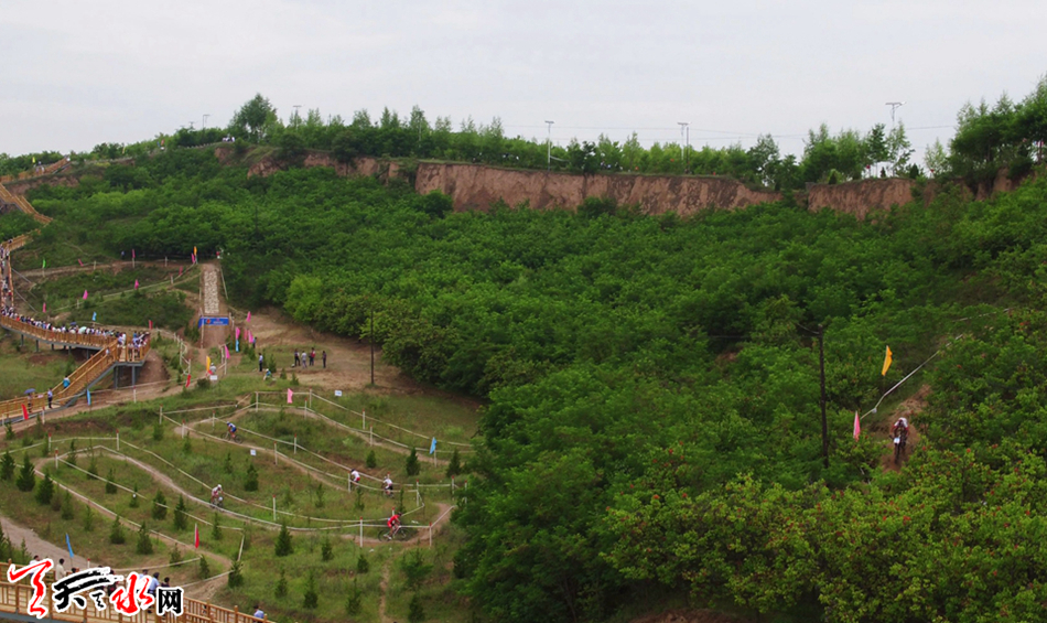 本次比赛场地位于麦积区甘泉镇翠山梁西坡,国家山地自行车训练基地,在颖川河流域综合开发区内,地处麦积主城区、天水国家级经济技术开发区与麦积山5A级风景区三大功能板块之间,区位优势独特,景色秀美。翠山梁东西两侧分布的东柯河、颖川河流域,既是全市文化旅游资源聚集区,也是我市城市拓展的最佳承载区。值得一提的是,在成功举办2015年全国山地自行车锦标赛之后,今年麦积区按照相关技术要求和标准,对赛道做了进一步改建和完善,同时新建了观赛健身步道。该步道依托翠山自然山体,由南向北绵延,与赛道并行,全长1.45公里,主体为钢结构架设,铺设防腐木地板。这也是全国第一家景观步道和山地赛道并行建成的专业赛道,极大地提高了比赛的观赏性和趣味性,成为今年本届赛事的一大亮点,也为今后举办更高规格的赛事活动打下了坚实基础。