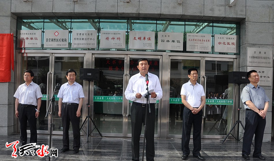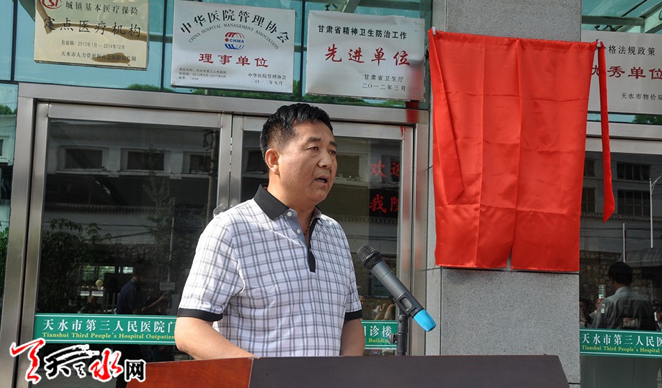 天天天水网讯【记者赵蔓】6月24日,天水市社会心理健康服务中心在市三院揭牌成立。天水市委常委、政法委书记赵卫东出席揭牌仪式并讲话,天水市人大常委会副主任张仲康、天水市政协副主席马武生出席揭牌仪式。