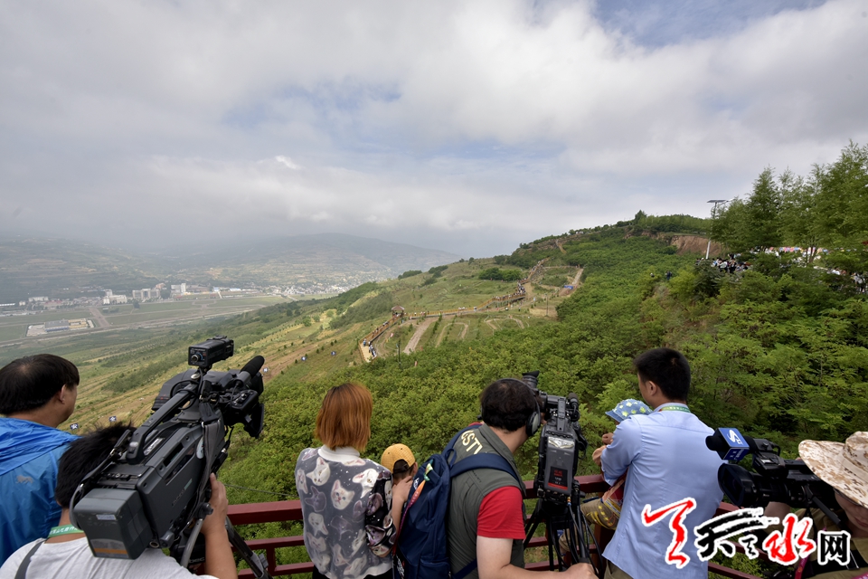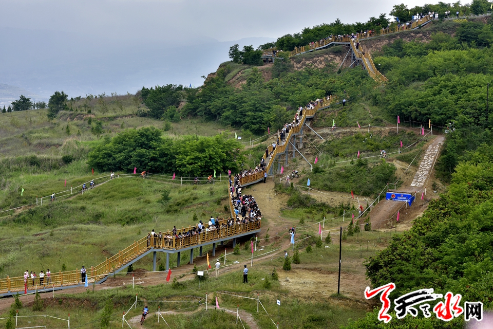 6月24日上午,前一天的降雨将连日来的酷热一扫而光,雨后的翠山烟雨蒙蒙,凉风习习,潮湿泥泞的赛道蜿蜒曲折穿过一片硕果累累的杏园,让比赛充满了变数和挑战性,顺赛道修建的观赛栈道让比赛精彩瞬间尽收眼底。“确实太美了,太惊艳了,在这里比赛,简直是一种享受”,江苏山地自行车主教练周广科在接收记者采访时不由得发出由衷的赞叹,周广科是第二次带队到翠山参加比赛,他记得去年在翠山比赛时,观赛栈道还没有修建,赛道还是一般性赛道,但今年翠山比赛场地已经具备国际山地自行车赛事标准,修筑的观赛栈道更是国内屈指可数,天水的热情好客也给人留下了深刻的影响。