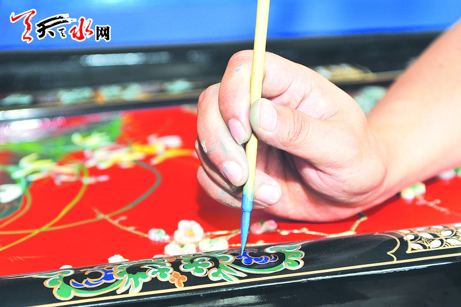 作为第二批国家非物质文化遗产,天水雕漆最大的特点就是骨石镶嵌工艺及雕刻填彩技法。近年来,随着雕漆技艺的日臻成熟和时代的进步,天水雕漆的创作手法亦呈现出多样化发展,他们将雕填、镶嵌、描金、印锦、堆漆、彩绘等手法巧妙搭配、灵活应用,使之成为中国漆艺中的一朵奇葩。