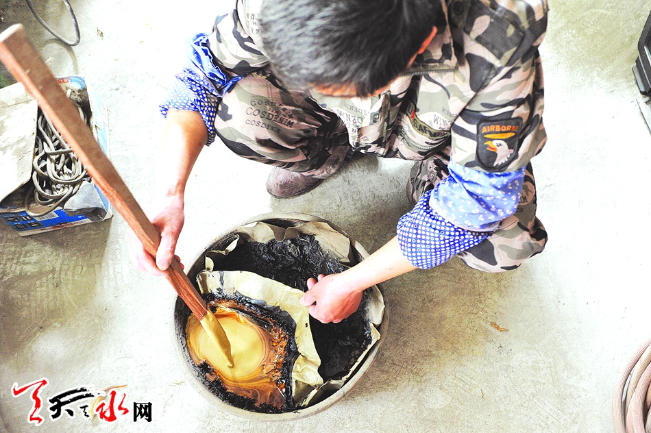 张师傅介绍,雕漆工艺最重要的就是漆的材质,天水雕漆所使用的原料是生漆,也叫大漆。在天水小陇山林场有不少盛产大漆的漆树,而这样得天独厚的自然优势,也正是天水雕漆从秦汉时期流传至今,世代传承、久盛不衰的原因。