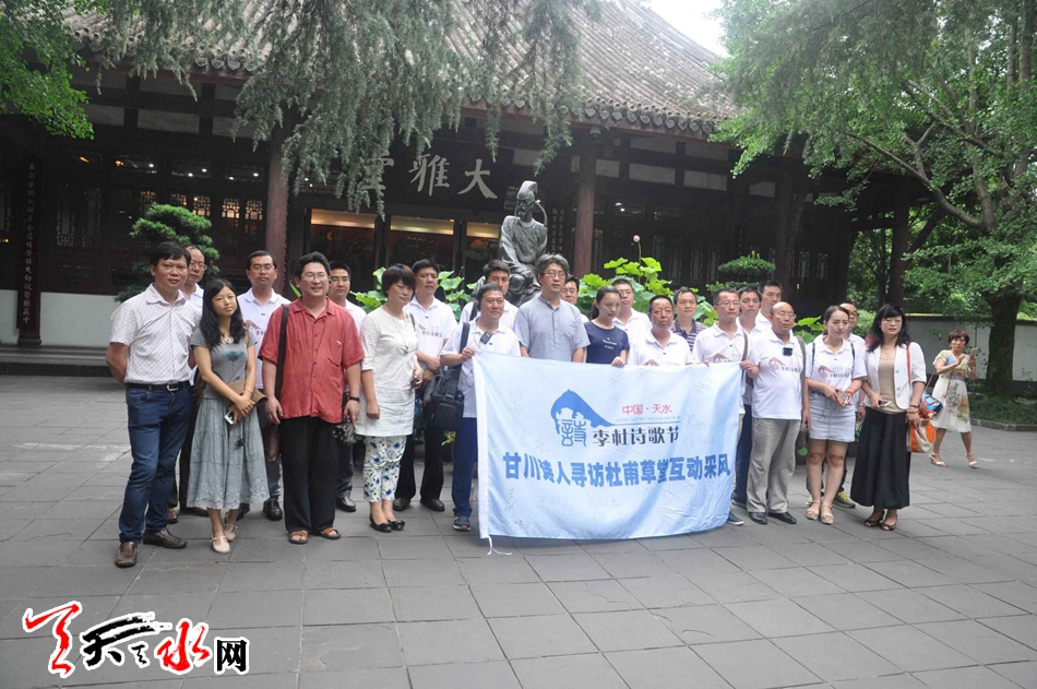 天天天水网讯(记者惠富强)6月26日下午,伴随着来自兰州、天水的十余位诗人在甘川诗人寻访杜甫草堂互动采风活动队旗上签下自己的名字,由首届“中国天水.李杜诗歌节”组委会与四川省作协《星星诗刊》杂志社联合举办的甘川诗人互访杜甫草堂第一阶段采风活动——甘肃诗人赴成都寻访杜甫草堂采风活动圆满结束。