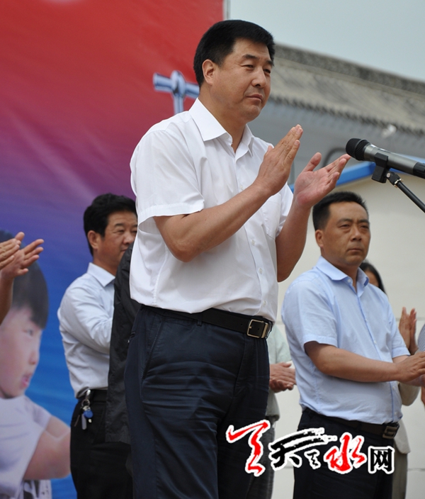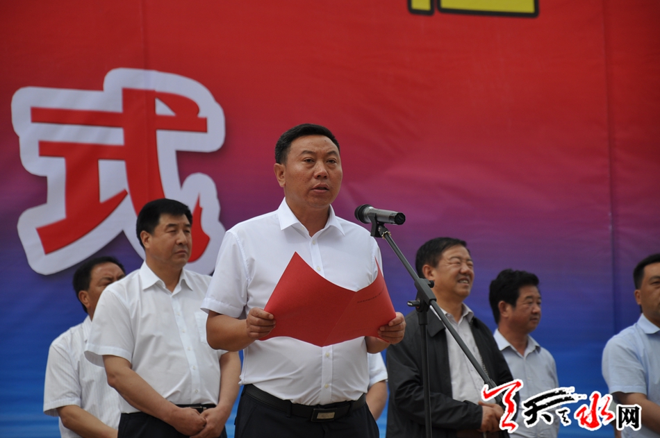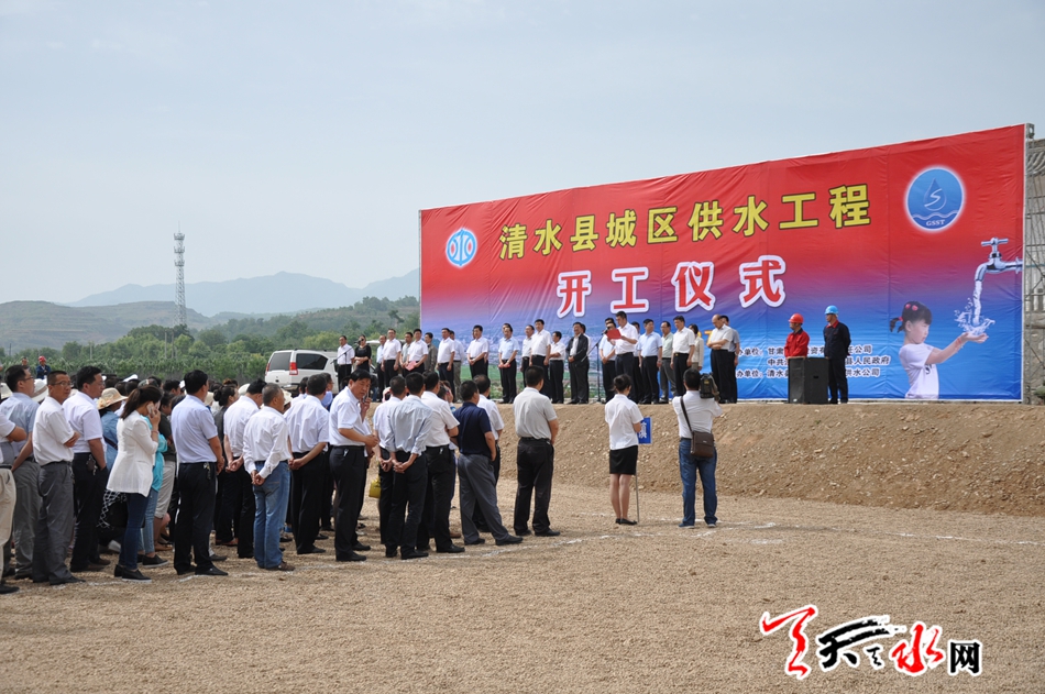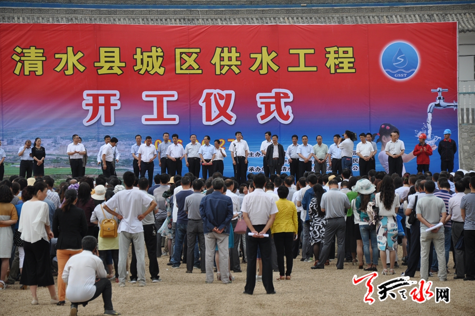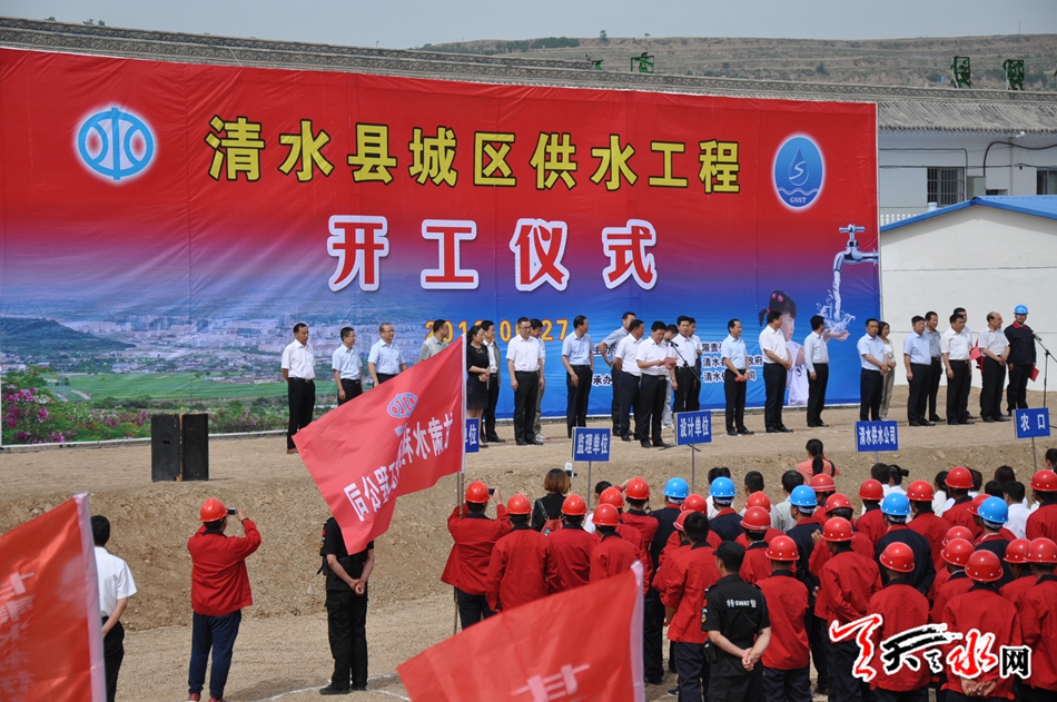 清水县委书记刘天波出席开工仪式并宣布项目开工。甘肃省水务投资有限责任公司总经理霍子俊出席会议并讲话。清水县长马越垠致辞。清水县委副书记牛军主持开工仪式。