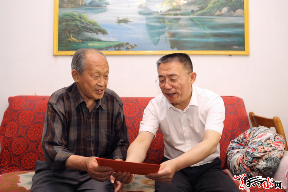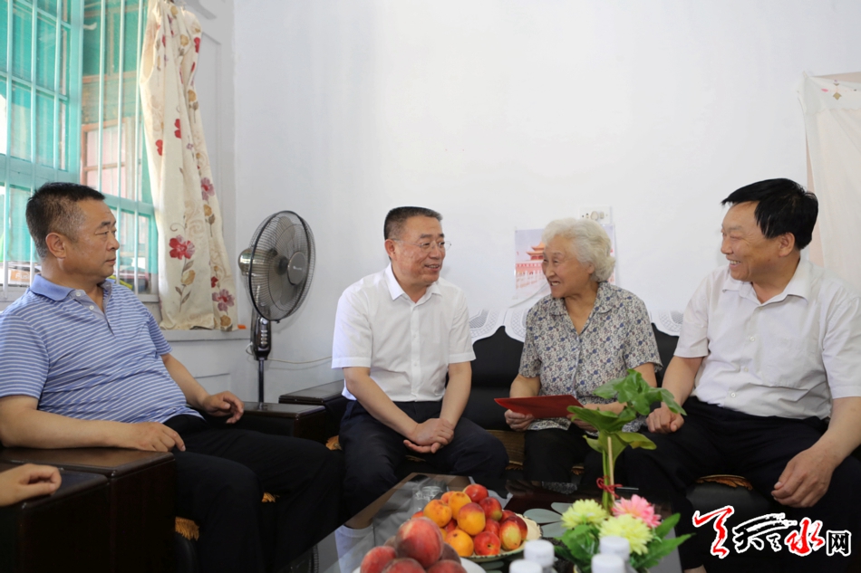 天天天水网讯【记者王晓馨】6月28日下午,在中国共产党成立95周年纪念日到来之际,天水市委书记王锐,天水市委常委、秘书长蒋晓强,天水市委常委、秦州区委书记雷鸣到秦州区看望慰问老党员和生活困难党员,给他们送去了党的关怀和温暖,并通过他们向全市广大党员致以节日的问候和祝福。