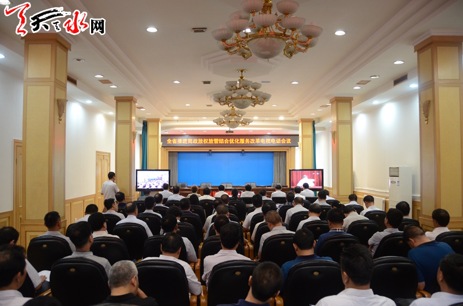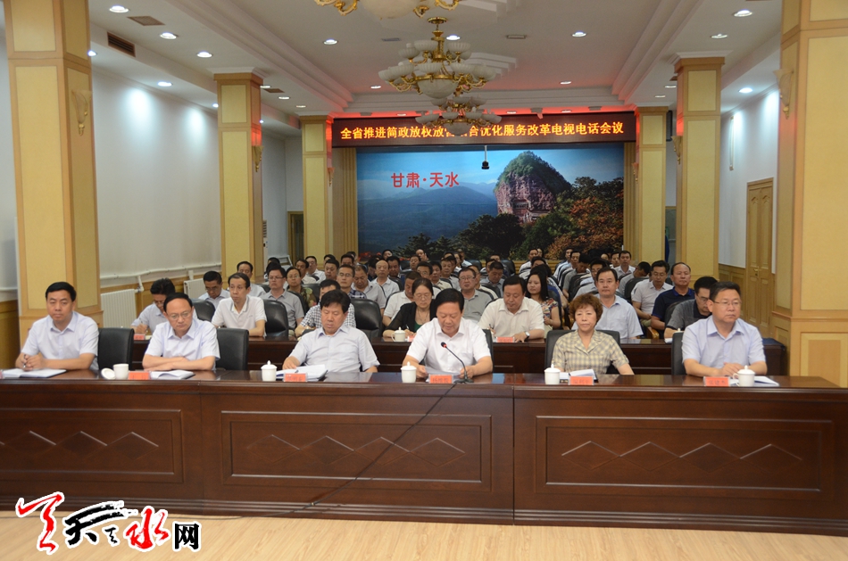天天天水网讯(记者郝勤学)6月29日,甘肃省政府召开全省简政放权放管结合优化服务改革电视电话会议,就深入推进全省“放管服”改革各项工作,建设人民满意的服务型政府进行安排部署。天水市委副书记、市长杨维俊在天水分会场参加会议并代表天水市政府作交流发言。