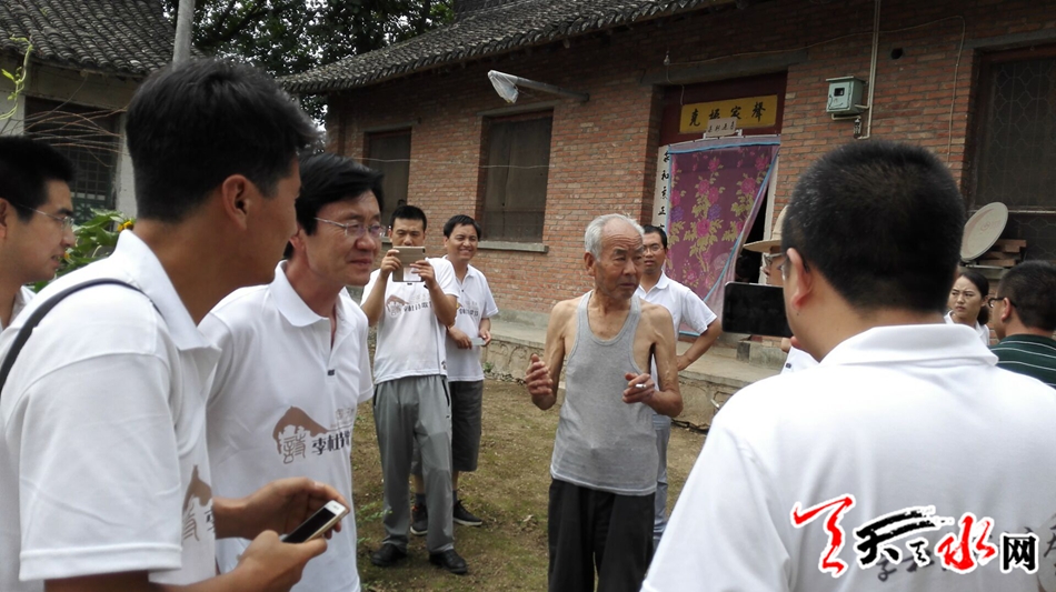 雪潇说,本次采风活动的行进路线不但是对诗歌创作,对杜甫研究都极具吸引力。这条路线,经由杜甫的足迹,已确乎成了一条诗歌的路线。杜甫的24首纪行诗,就是这条诗歌路线上24个景点。比如赤谷、铁堂峡、盐井、寒峡、青阳峡、龙门镇、积草岭、凤凰台、成县杜甫草堂,比如徽县栗川杜公村的杜公祠遗址,再比如水会渡、白沙渡、剑门等等。在徽县栗川镇杜公村,我们探访到了当年的杜公祠旧址。当我们走进杜公祠时,一位矍铄老人赤膊迎了出来,只听雪潇大喊一声,杜公来了,这就是真的杜公呀!大家一看老人的形象,发出了会心的笑声。