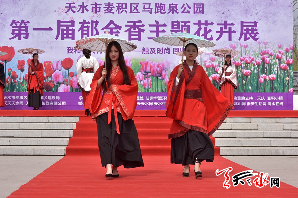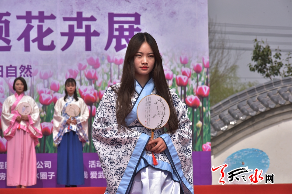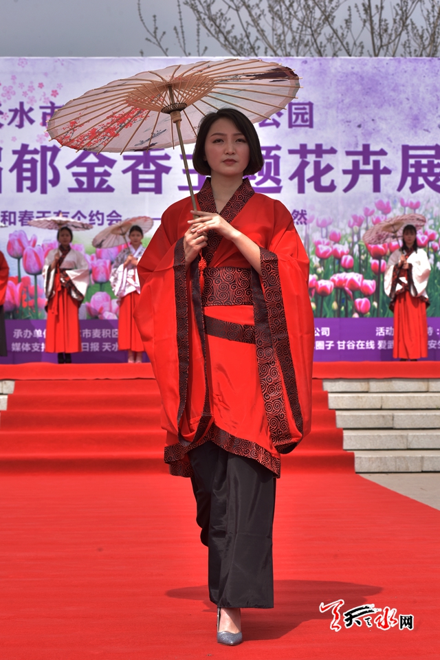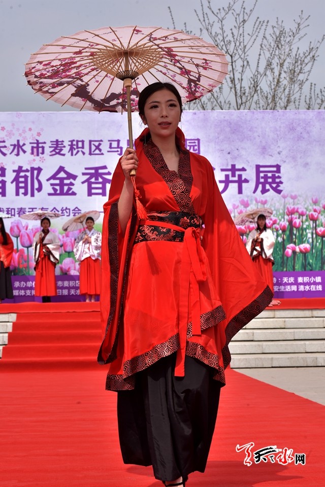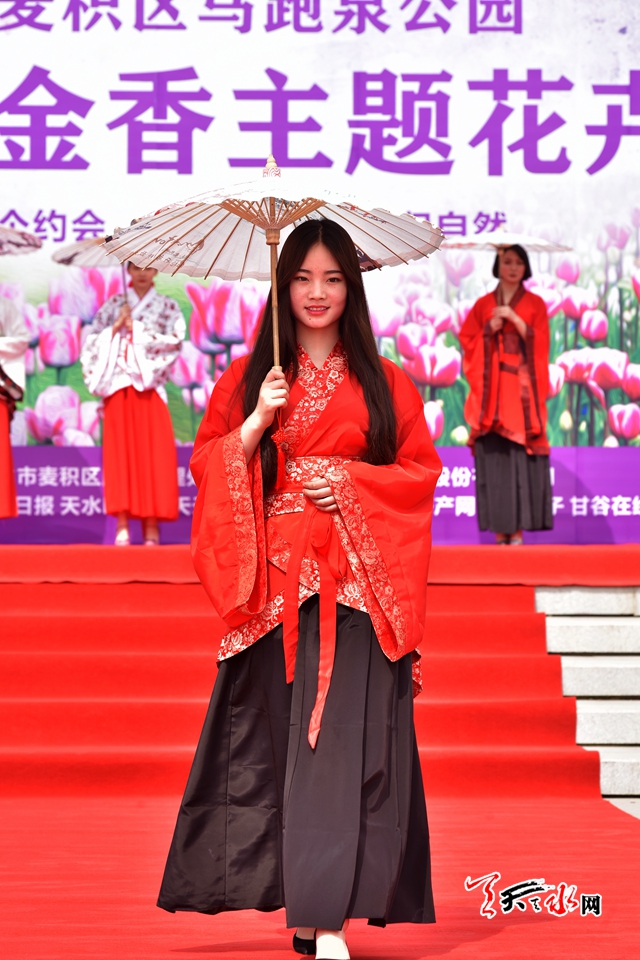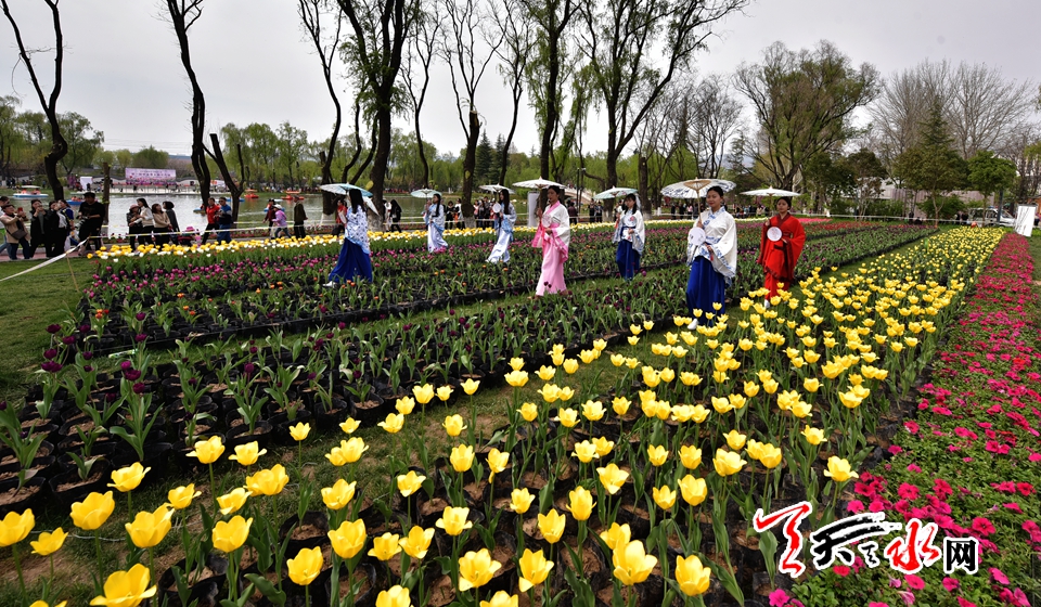 4月14日,“佳人相伴 细看花开”——传统汉服秀,作为首届郁金香花卉展的重头戏如期而至,上午10时许,身着汉服的八位佳丽在庄重古雅的古乐伴奏下,演绎着汉服文化的儒雅仁和与郁金香博爱高雅间的审美共性。让游客在感受传统文化魅力的同时,在满园郁香的马跑泉公园更体验到传统文化的趣味。
