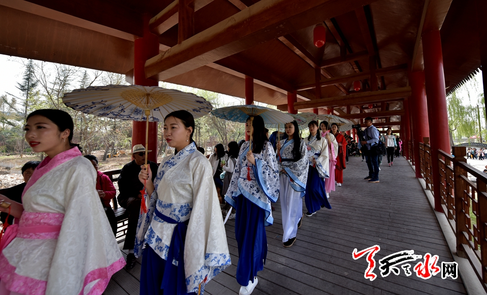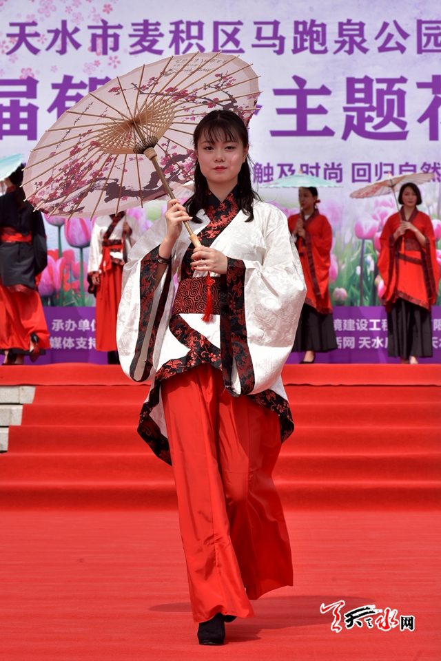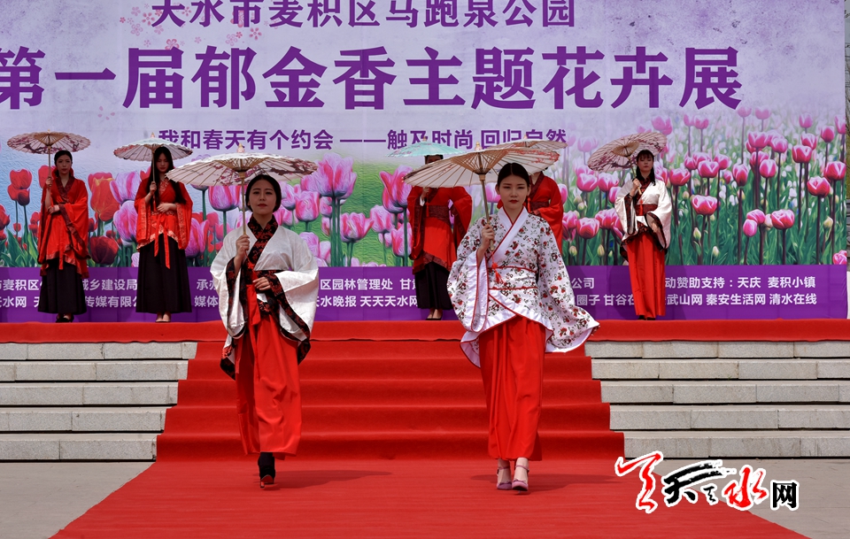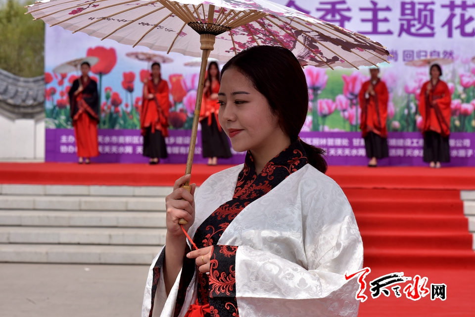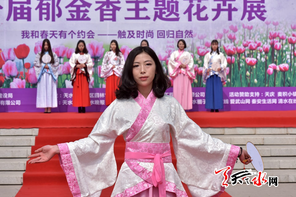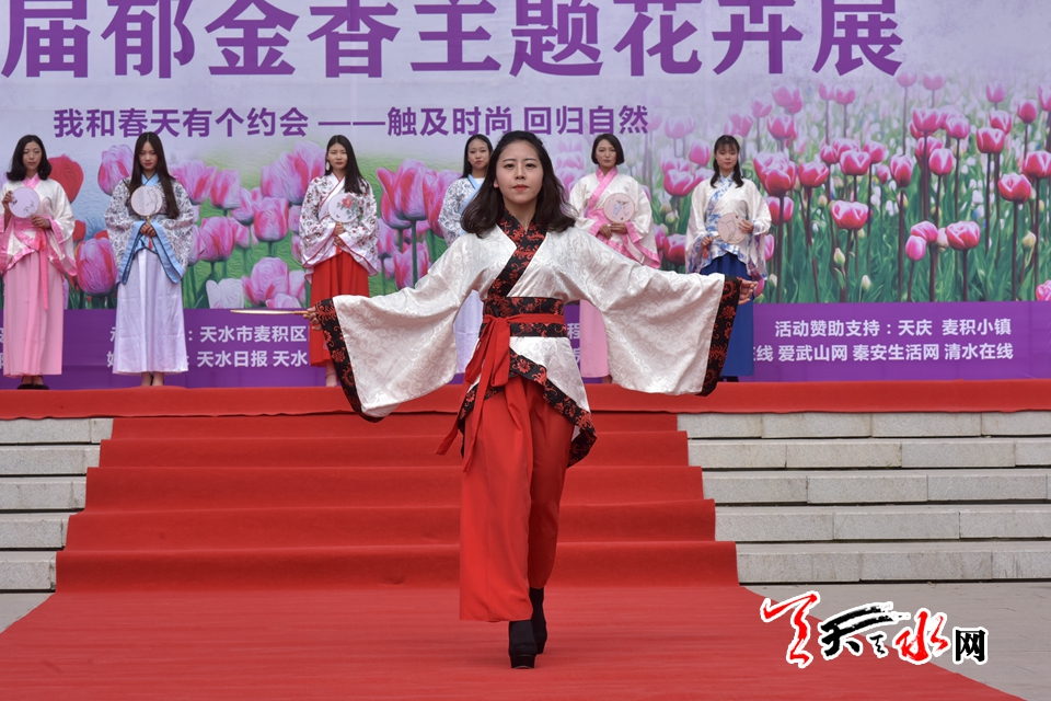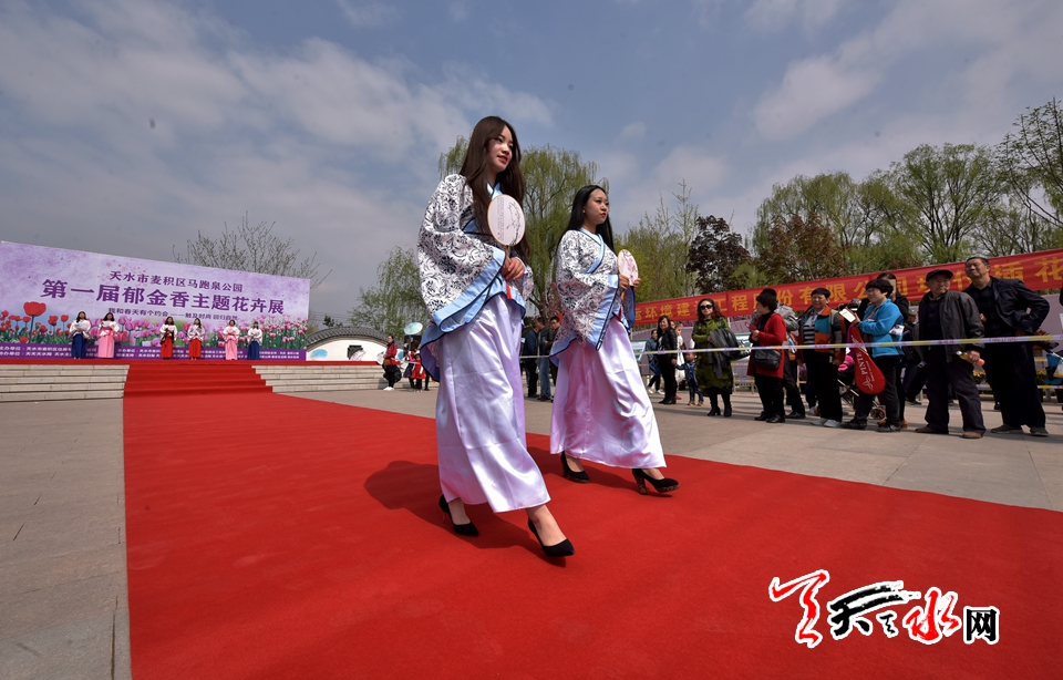 4月14日,“佳人相伴 细看花开”——传统汉服秀,作为首届郁金香花卉展的重头戏如期而至,上午10时许,身着汉服的八位佳丽在庄重古雅的古乐伴奏下,演绎着汉服文化的儒雅仁和与郁金香博爱高雅间的审美共性。让游客在感受传统文化魅力的同时,在满园郁香的马跑泉公园更体验到传统文化的趣味。