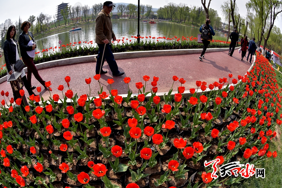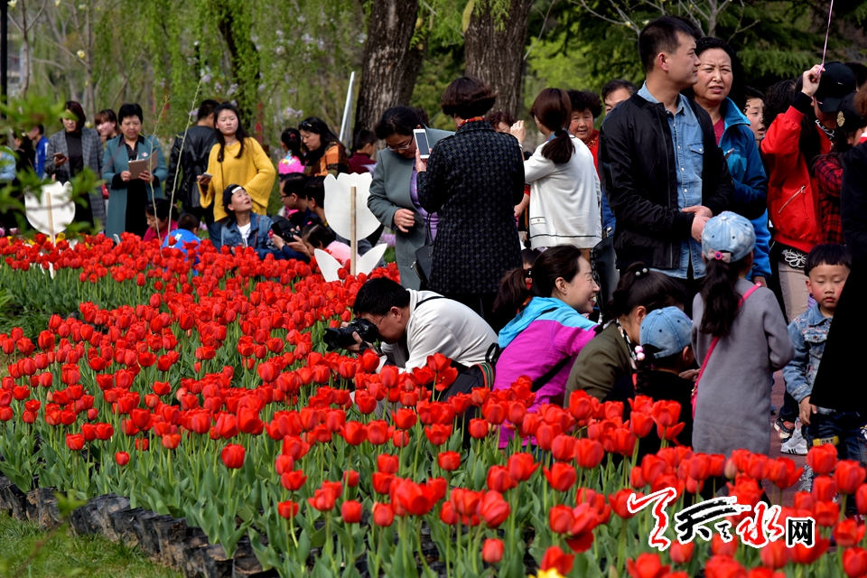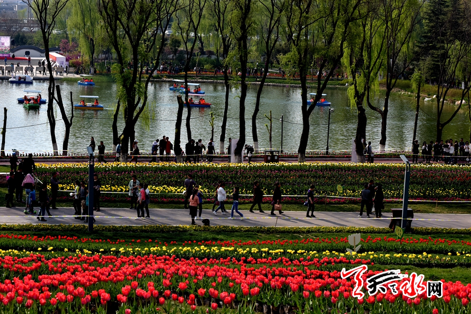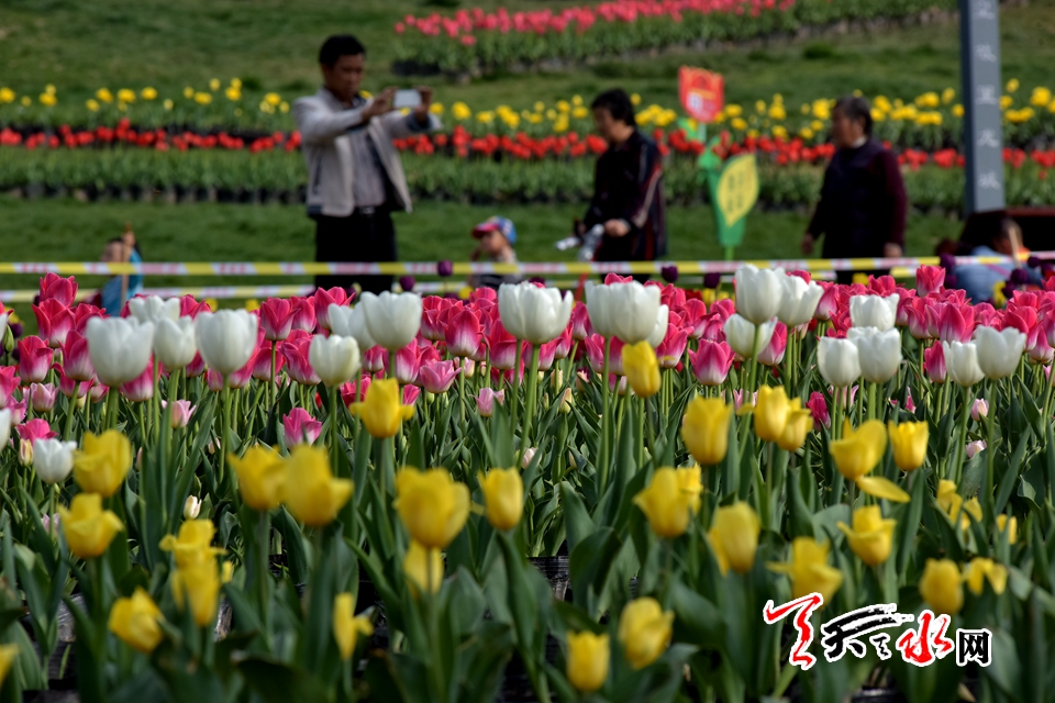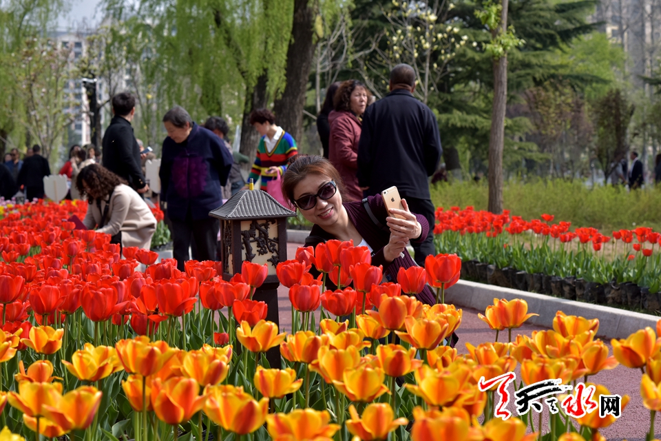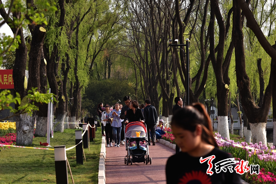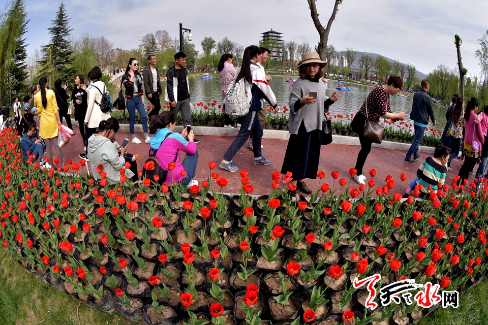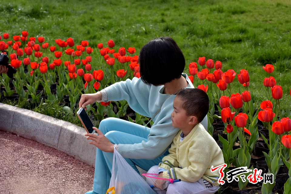 当日的马跑泉公园从早上至下午,游人如织,人们手中的手机在不停地纪录着这一春光胜景,约会着这春天古城天水意外的收获,12万支各色郁金香次第展放,花卉刚劲挺拔,叶色素雅秀丽,荷花似的花朵端庄动人,惹人喜爱。和着春光观赏高贵典雅、香远益清的“世界花后”,“不知何处是他乡”的感觉油然而生。