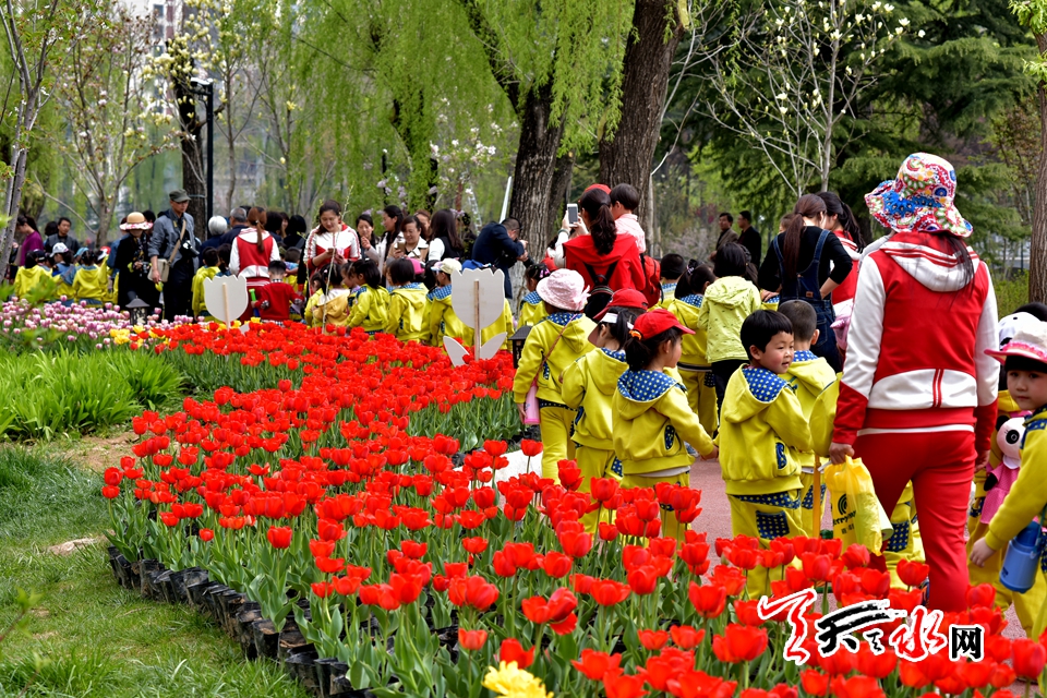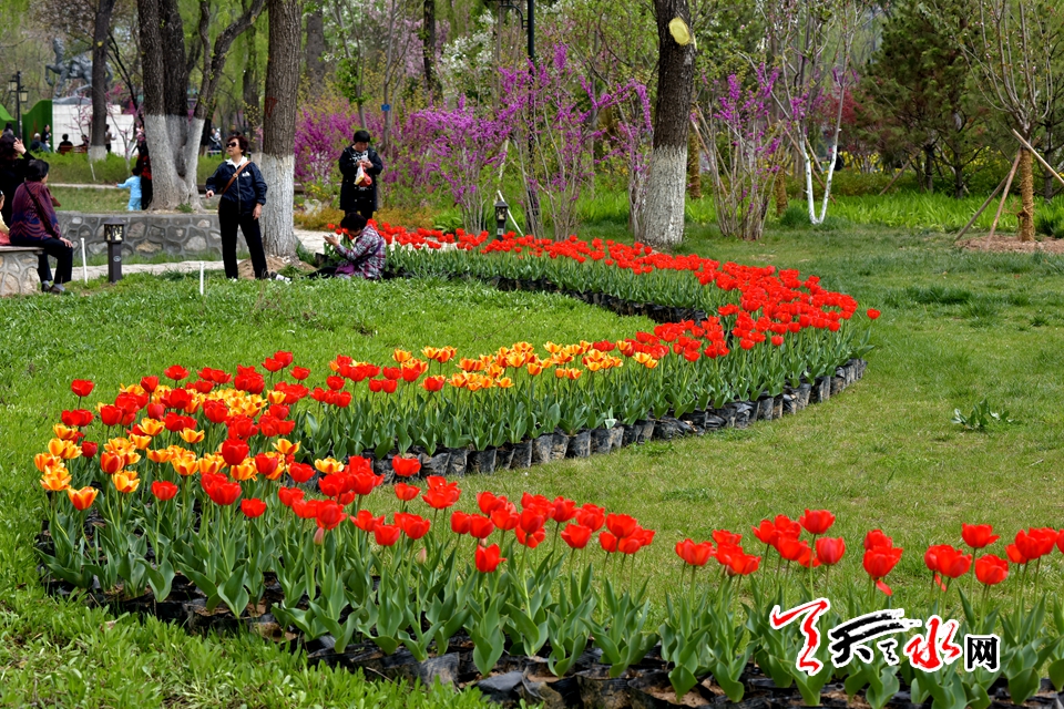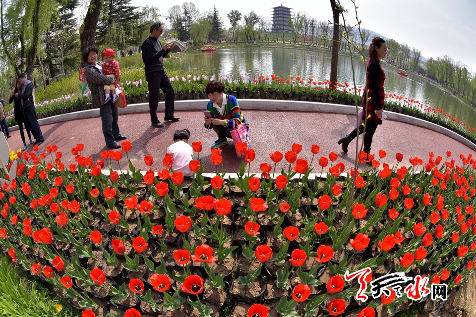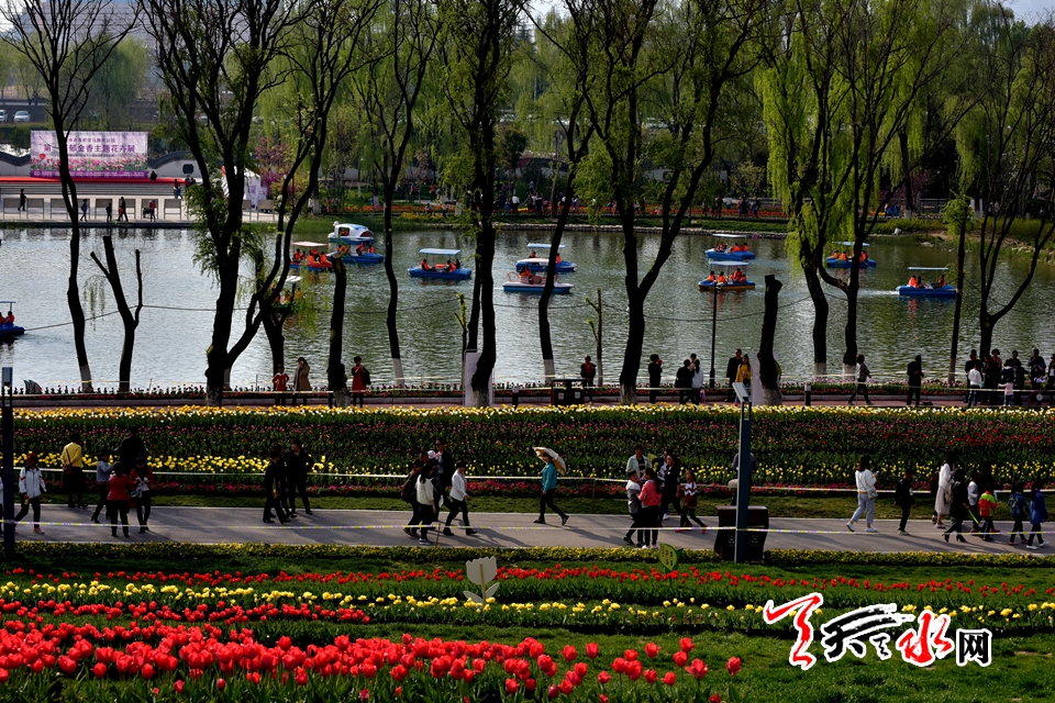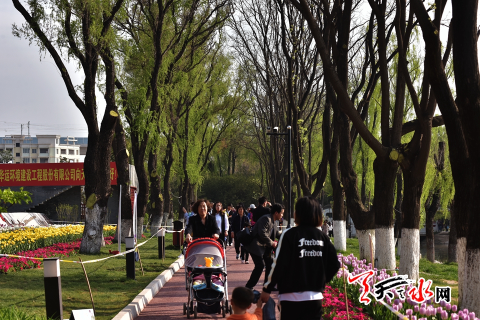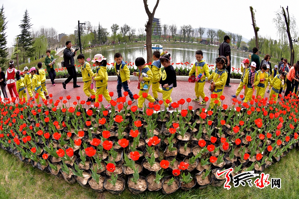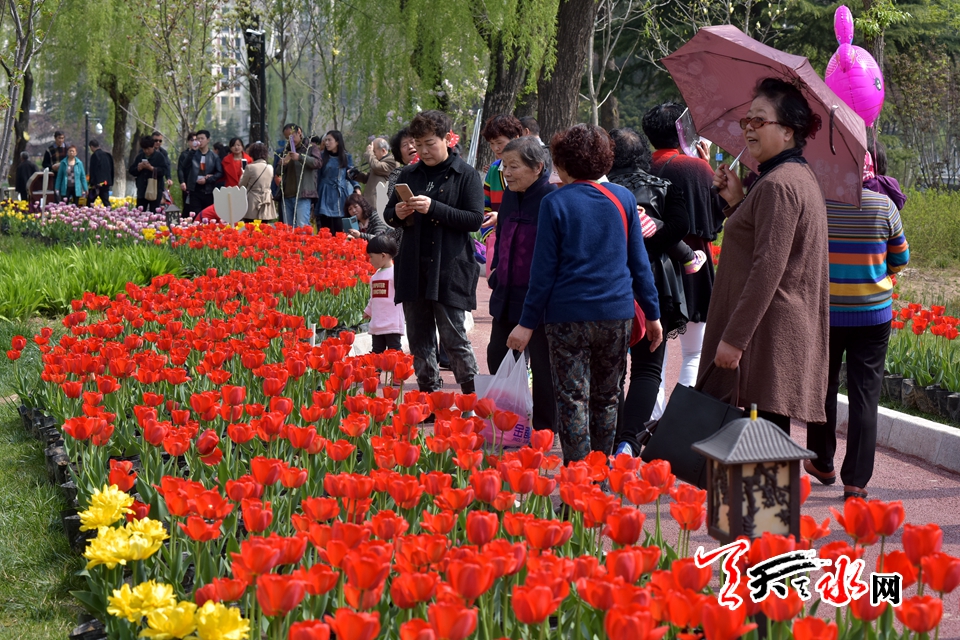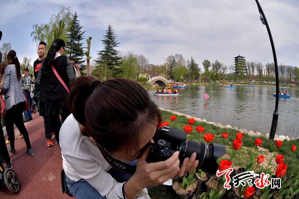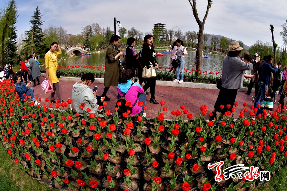 当日的马跑泉公园从早上至下午,游人如织,人们手中的手机在不停地纪录着这一春光胜景,约会着这春天古城天水意外的收获,12万支各色郁金香次第展放,花卉刚劲挺拔,叶色素雅秀丽,荷花似的花朵端庄动人,惹人喜爱。和着春光观赏高贵典雅、香远益清的“世界花后”,“不知何处是他乡”的感觉油然而生。