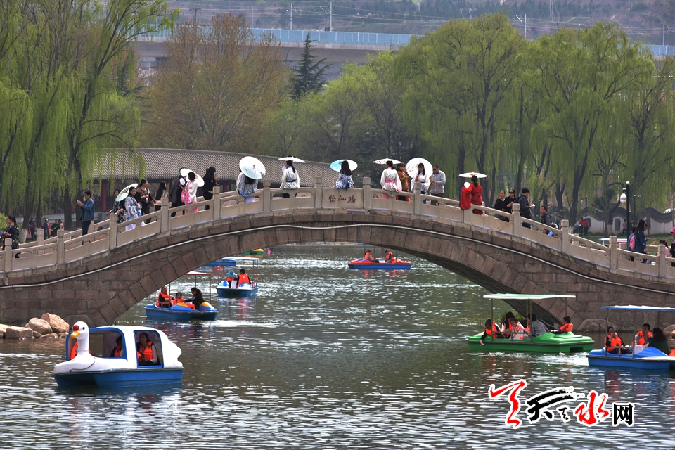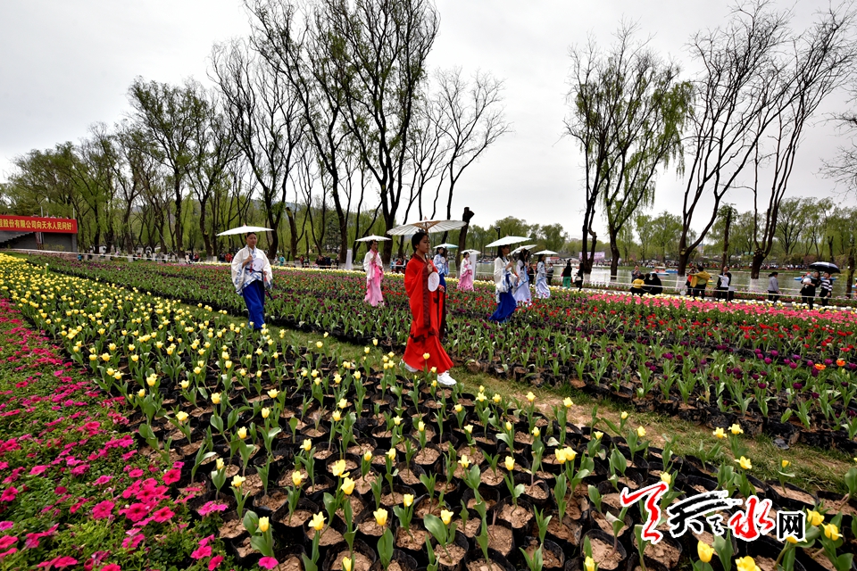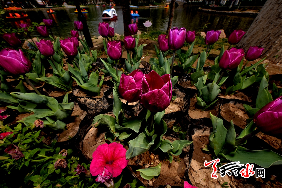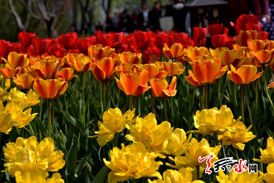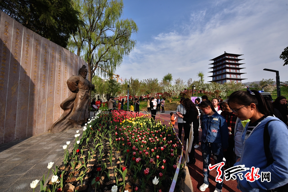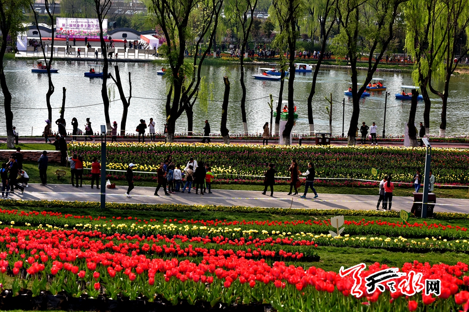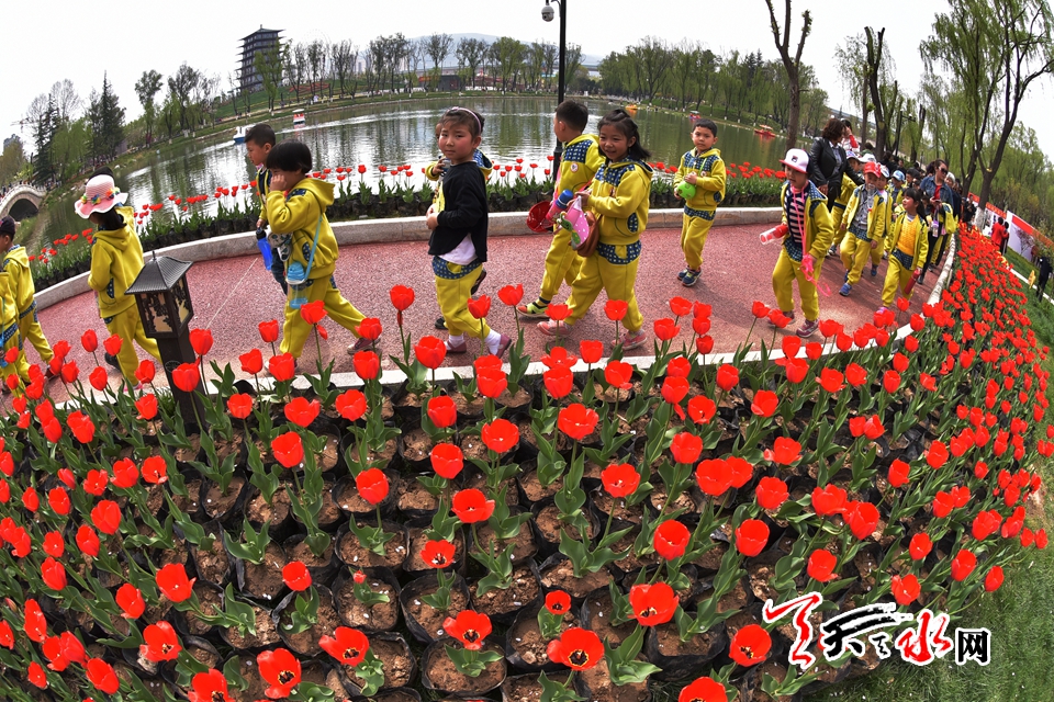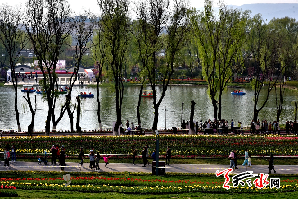 当日的马跑泉公园从早上至下午,游人如织,人们手中的手机在不停地纪录着这一春光胜景,约会着这春天古城天水意外的收获,12万支各色郁金香次第展放,花卉刚劲挺拔,叶色素雅秀丽,荷花似的花朵端庄动人,惹人喜爱。和着春光观赏高贵典雅、香远益清的“世界花后”,“不知何处是他乡”的感觉油然而生。