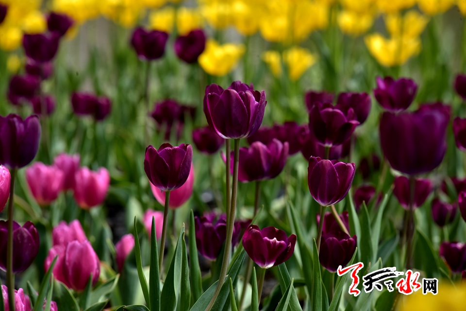 四月的天水,因花而景胜,尤其近几日,陇上江南因一种花的到来而成为公交车上谈说的焦点,朋友圈里转发的谈资,她就是清雅秀丽被誉为“世界花后”的郁金香。