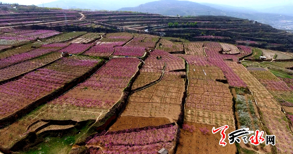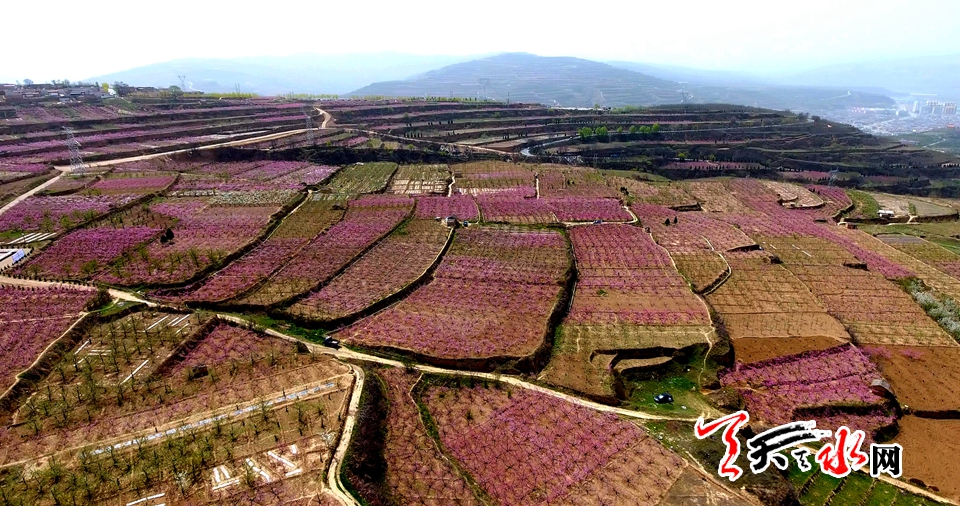 最美不过四月天,桃乡百里尽粉面。2017年甘肃秦安桃花会近日迎来桃花盛开的高峰期,伴着春和景明的明媚春光,被誉为“中国桃乡”的秦安桃红盈野,诗意盎然。