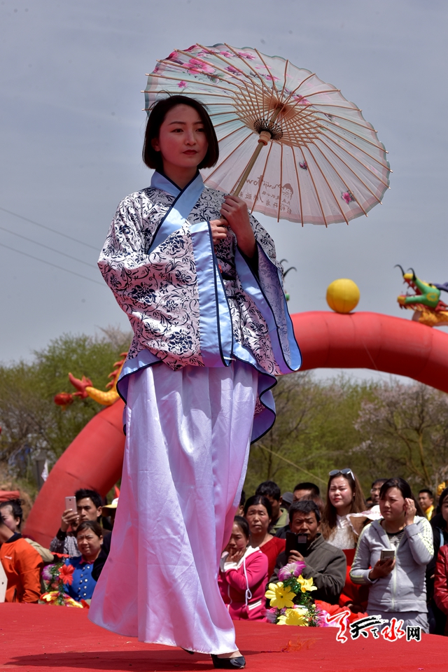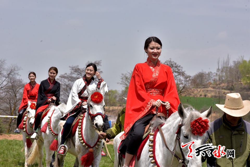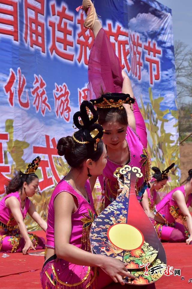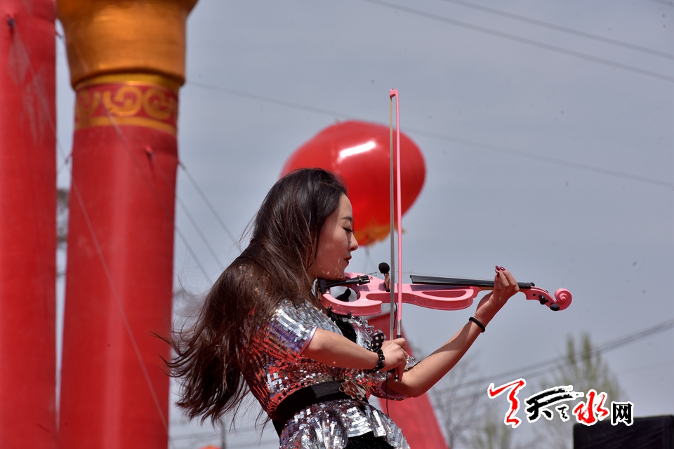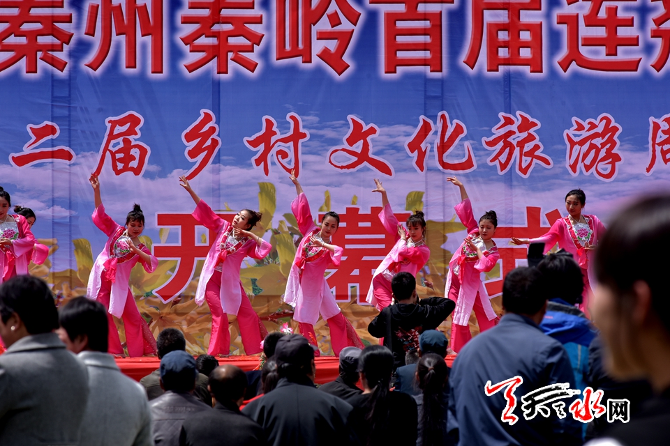开幕式上举办了以“寻梦黄金花海·乐游田园风光”为主题的大型文艺演出,秦岭非物质文化遗产鞭秆舞及其他独具特色的民俗表演精彩纷呈,更有秦岭籍青年歌手张狄、中国秦腔四小明旦袁丫丫、著名独角戏表演艺术家王海生等天水本地知名艺人的助阵演出,引得现场观众阵阵喝彩。射箭场上,天水市射箭协会会员身骑骏马,上演了精彩绝伦的传统骑射表演,让游客感受到了传统的骑射魅力。