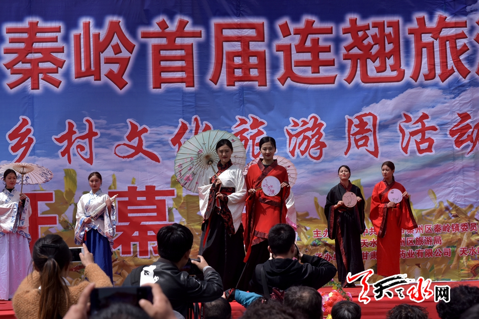 天天天水网讯【记者 永德 文都 晓亚 明辉】四月的秦岭,桃红柳绿,山花烂漫,春意盎然。4月20日上午,由秦州区秦岭镇委员会、秦岭镇政府、秦州区旅游局主办,甘肃天森药业有限公司承办的秦岭首届连翘旅游节暨第二届乡村文化旅游周在春光如画的石家河村盛大开幕。