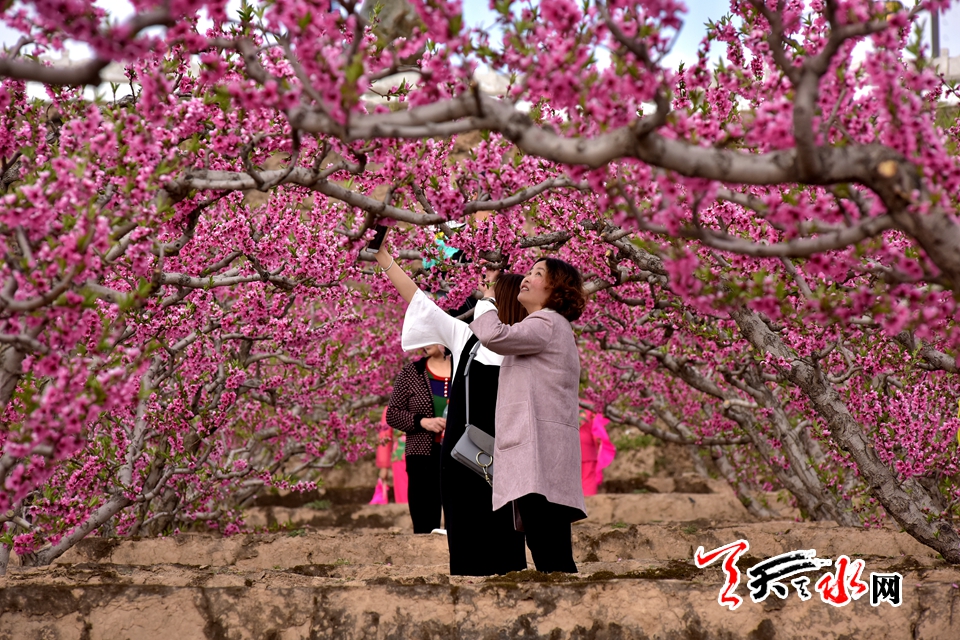 四月的“羲里娲乡”,处处春色盈野,洋溢着勃勃生机,走在被誉为“蜜桃之乡”的秦安大地上,处处桃花烂漫,该县刘坪乡何湾桃花景观园内,万亩桃花随着山势绵延起伏竞相绽放,不断吸引着各地游人赏花拍照。