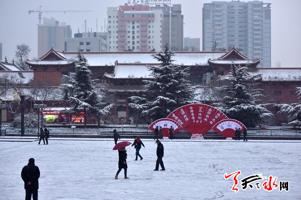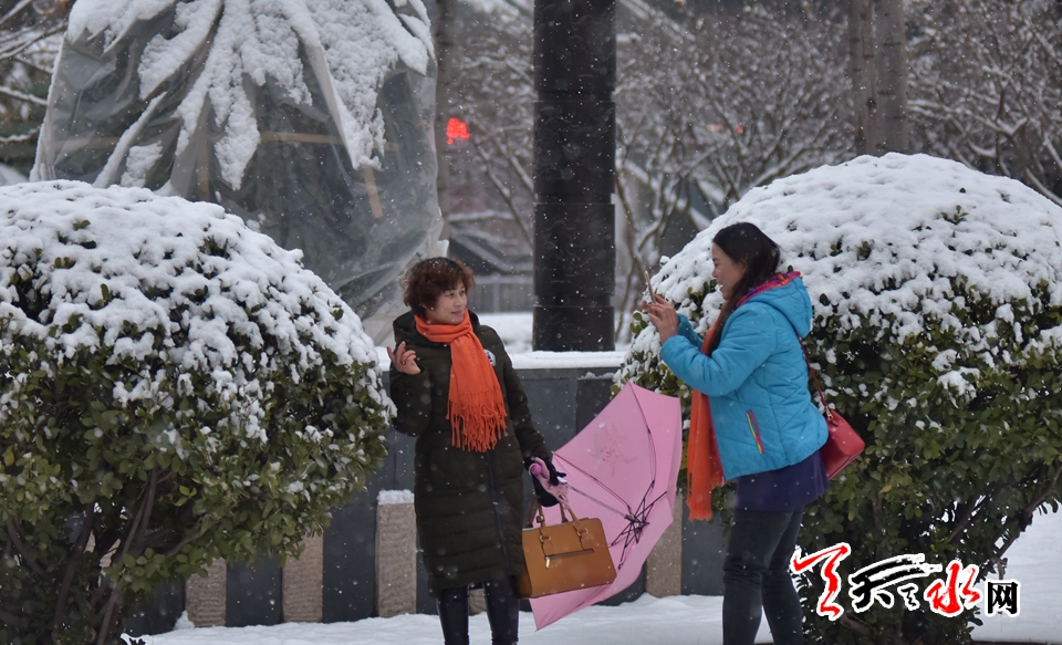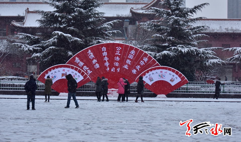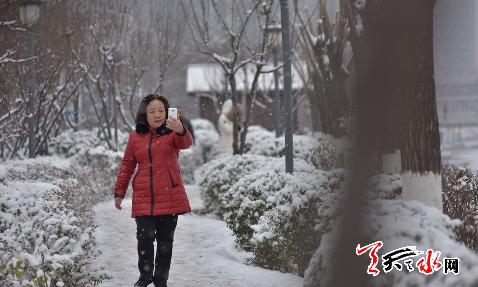 天水每年都在下雪,可都是在历经了感冒和期盼后才姗姗迟来,好象唯有如此,才能显现出冬天雪的稀罕。当然,这场迟来降雪,龙城天水也不负你的冬韵之美。当凌晨街灯还未熄灭时,人们就早早出了家门,感受真正意义上的冬天,手机拍摄功能成为今天的“主打”,朋友圈里晒的雪景,更是你方唱罢我登场,好不热闹。