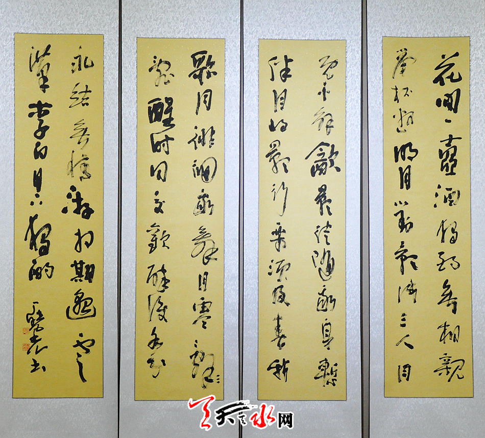 丁晓光,1946年生,甘肃天水人,毕业于西北师大中文系,中学高级教师。现为甘肃省农民书画研究会天水分会会长,天水老年大学书法教师。研习书艺四十余载,擅长行草、隶书,心务魏晋,目游明清,碑帖并举,不薄今人爱古人。隶学《张迁碑》、《石门颂》;楷学《爨宝子碑》、《张猛龙》;草书喜《平复帖》、《书谱》。作书重神采情韵,物我两忘一任自然。中书协理事纪道彬先生评其草书作品“笔角轻灵,气高韵丽,于今草飞荡之中揉入了章草的散淡高雅,于轻盈流传间散发出飘逸超然之气”。