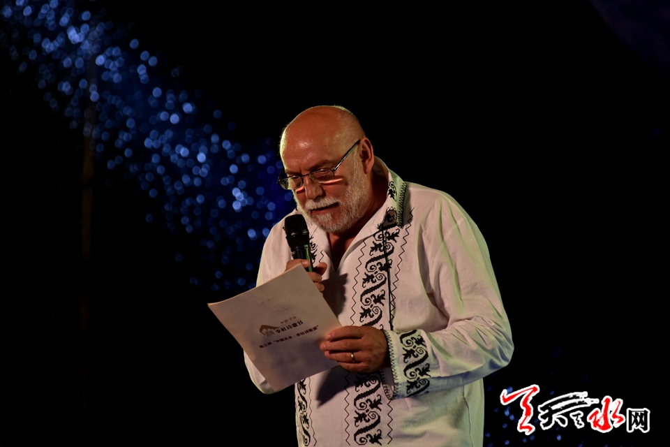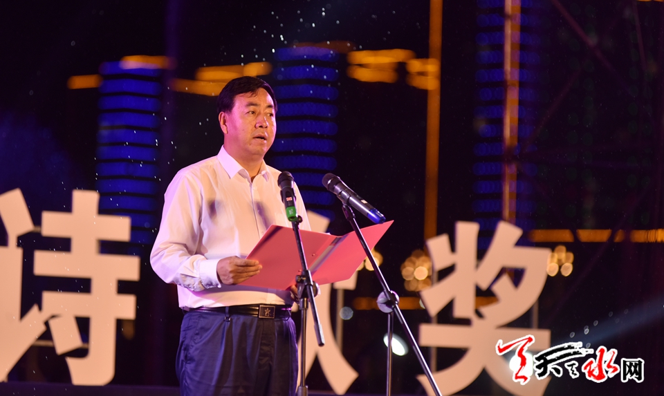 副市长逯克宗致辞,代表天水市委、市人大、市政府、市政协向各位获奖作者表示热烈祝贺。他说,“中国天水•李杜诗歌节”自2016年举办以来,得到海内外华人文学界广泛认可,品牌效应日趋显现。希望主办、承办各方从打造“李杜光芒,诗意天水”文化品牌,扩大天水对外文化影响力的角度出发,总结经验、再接再厉、精心策划、精益求精,不断提升诗歌节的层次和影响力,将“中国天水•李杜诗歌节”和“中国天水•李杜诗歌奖”打造成国内著名、海内外华人文学界知名、“一带一路”沿线国家和地区有影响的诗歌品牌。同时也希望通过举办一年一届的 “中国天水•李杜诗歌节”、颁发一年一届的“中国天水•李杜诗歌奖”,弘扬中国诗歌传统,续写天水与大唐诗仙李白、大唐诗圣杜甫的历史情缘,为中华民族的伟大复兴、为天水文化事业发展作出更大贡献。