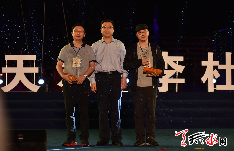 市政协副主席、麦积区委书记张智明为银奖获得者古马(左一)、高鹏程(右一)颁奖