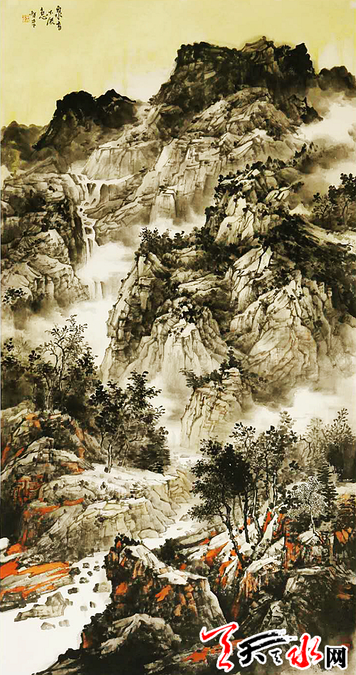 2017年作品《云崖听泉》入选“庆祝十九大 丹青颂华章”天水市中国画作品展;