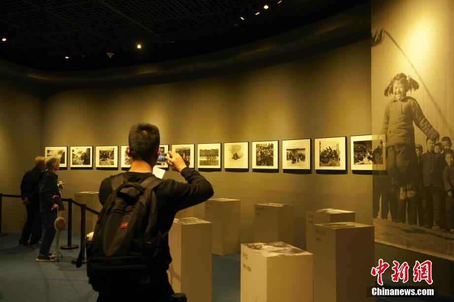 10月10日,在北京首都博物馆,观众在“国家相册 致敬历史——新华社中国照片档案馆典藏展”参展照片前观赏。此次展览由中国照片档案馆主办、新华网承办,精选了百余幅经典老照片,用鲜活的影像呈现中国共产党领导中华民族从站起来、富起来,到强起来的伟大历程。 中新社记者 张兴龙 摄