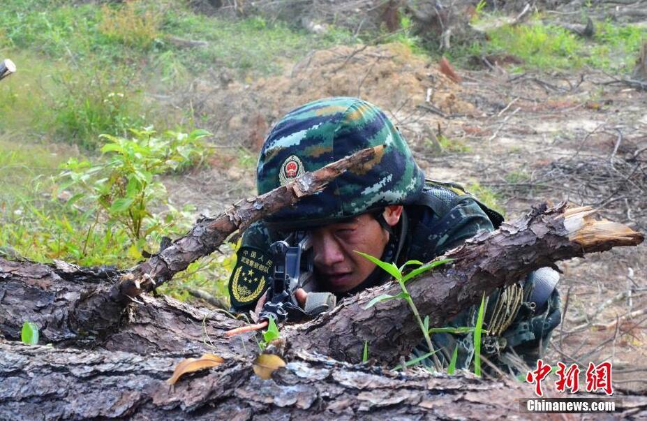 近日,武警广西总队第三季度“魔鬼周”极限训练打响,两百余名特战队员集结防城港开展武装奔袭、山林地搜捕、快速抢救伤员、穿越封锁线、抢占高地等极限体能科目训练,场面激烈堪比电影大片。图为特战队员抵近侦察。王彬 摄
