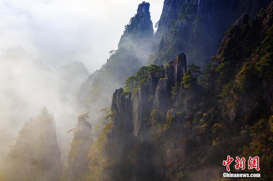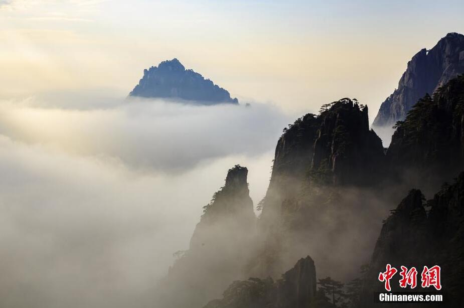 10月19日,安徽黄山风景区现大面积云海景观,秋日下的云海映衬着青松与黛石,宛如一幅山水画卷,吸引许多中外游客驻足观赏。据悉,“十一”黄金周后,黄山风景区旅游热度不减,每天都有万余名海内外游客登山观赏秋色。叶永清 摄