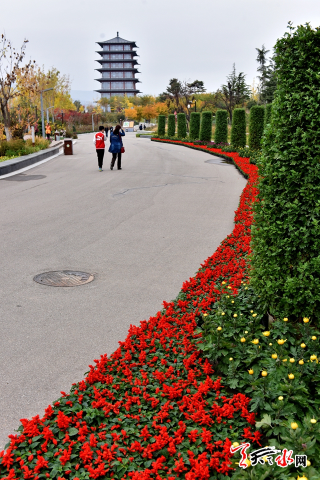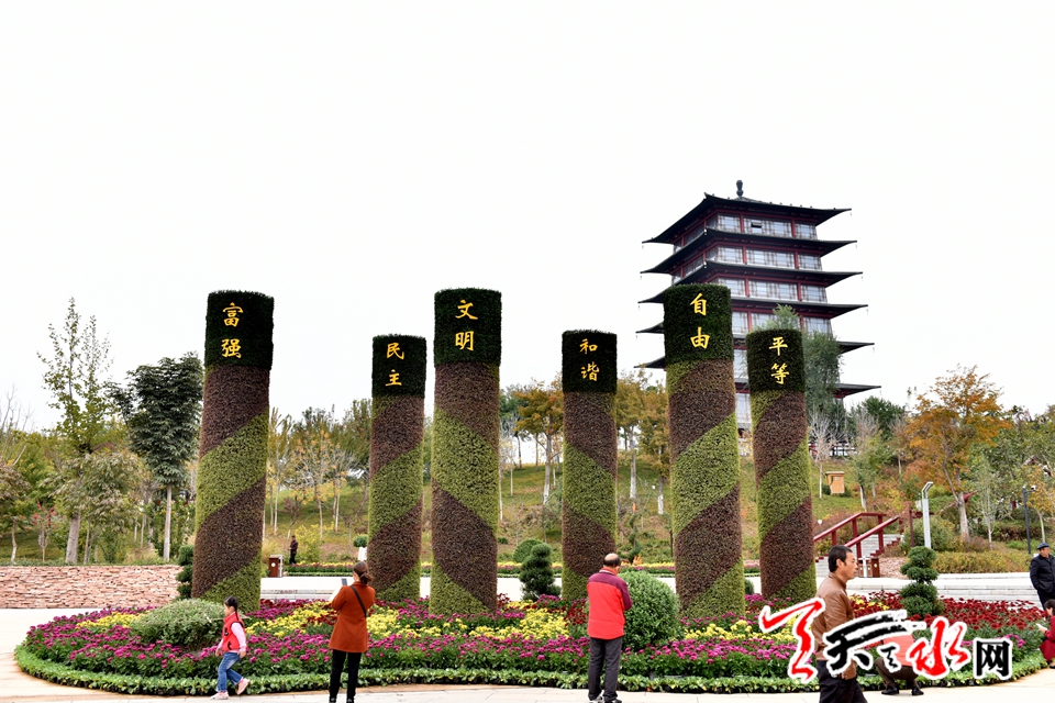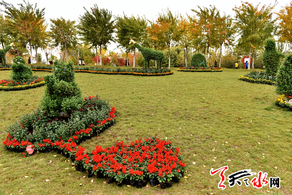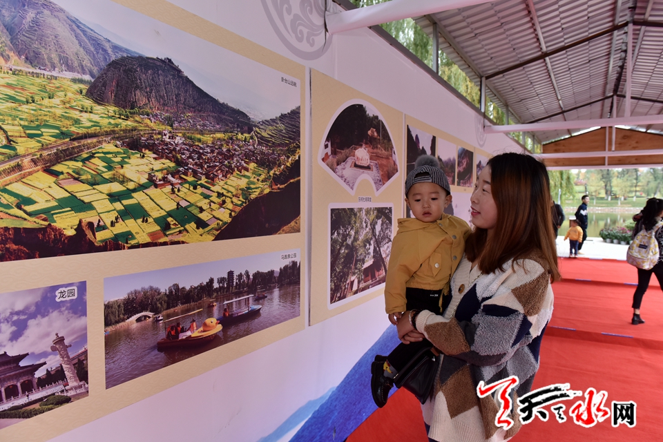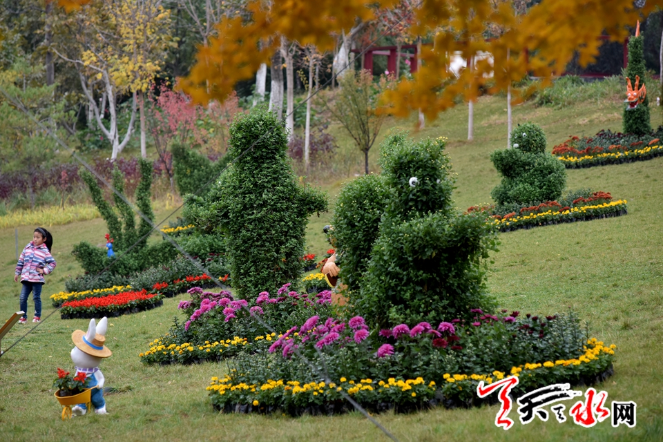 作为集观光游览、休闲娱乐、生态保护、文化传承为一体的综合性公园,本次菊花展在融入生态文明建设方面,以全新的视角和宣传阵容通过精美图文,分政策篇、资源篇、成就篇、展望篇等四个篇章,展示麦积区旅游资源、风景、人文、民俗以及发展取得的成就。