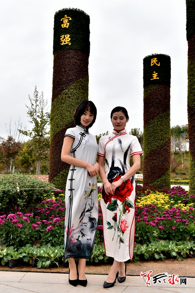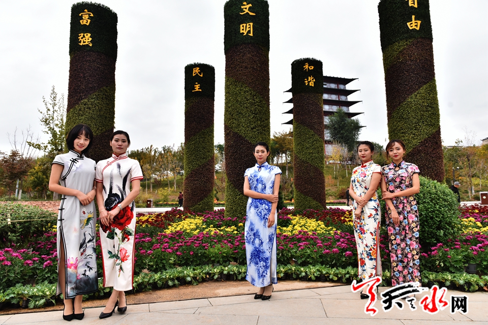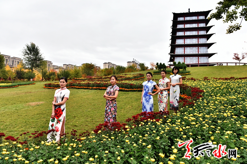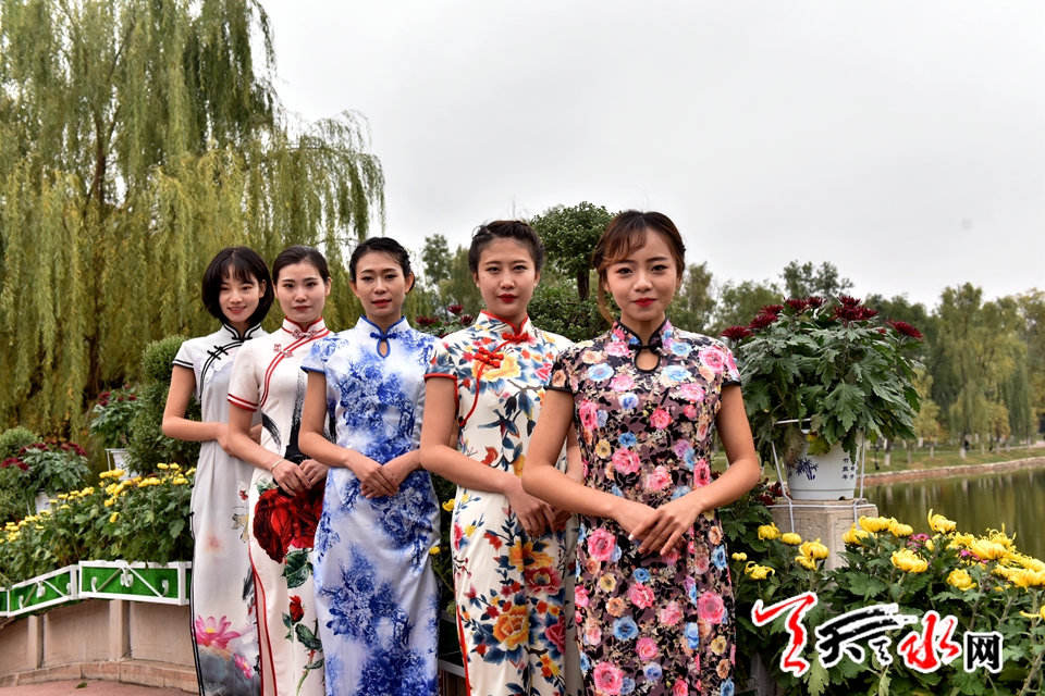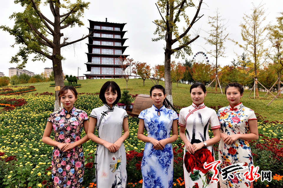 菊花与秋色同舞,旗袍共展演同秀。这是一场天水最大规模的菊事盛宴,在这里菊文化在中国传统旗袍的装点中,诗意秋韵以风雅之态温婉走来。把整个菊殿推向了至美境地。