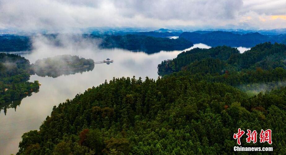 10月21日,连日秋雨后的江西省新余市仙女湖众多岛屿与丛林间云雾缭绕,宛如水墨仙境。据了解,仙女湖拥有亚洲最大的亚热带树种基因库,湖中分布着25条湖湾,数十个大大小小的岛屿,是江西省开发最早的湖泊型景区。 王剑 文 赵春亮 摄