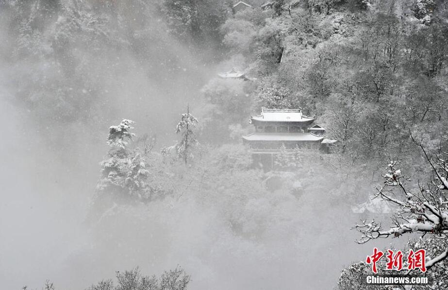 11月5日,甘肃“道源圣地”崆峒山雪花纷纷,漫山红叶被白雪覆盖,崆峒山成了冰雪的世界,远山、古树、庙宇都掩映在银装素裹中。雪景吸引游人走出户外,踏雪登山,赏景拍照。徐振华 摄