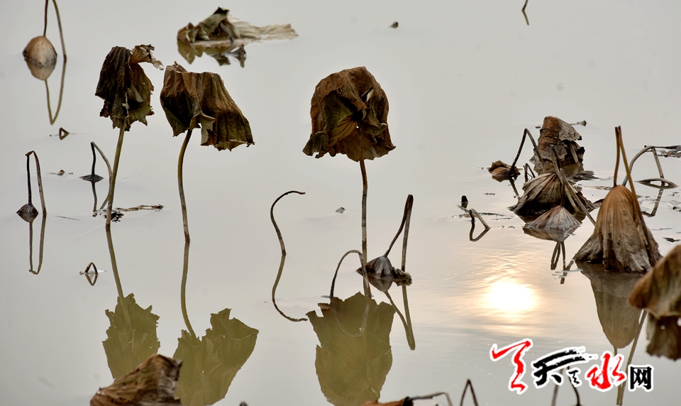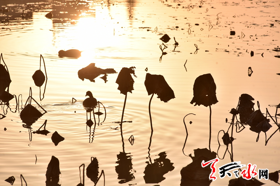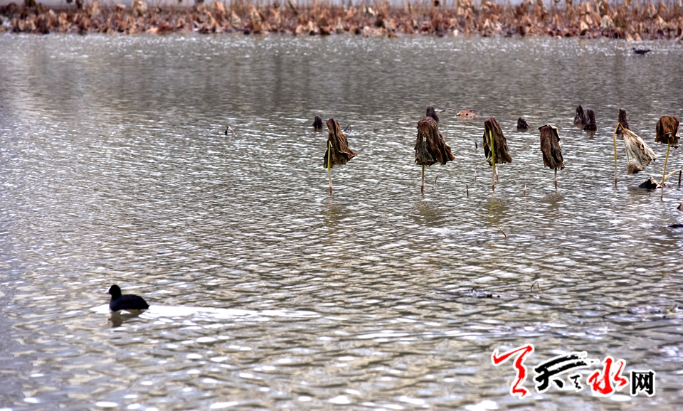 寒波横湖,枯荷吟诗,天水湖进入冬季的美,是一首清雅淡逸的诗,也是一幅素墨丹青画卷,二者合二而一,更贴切,更有名城天水的质感。