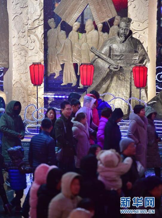 2月17日,游人在西安市曲江新区大唐不夜城步行街游览。 春节假期过后,陕西西安旅游市场持续繁荣,部分景区依旧游人如织。 新华社记者 邵瑞 摄