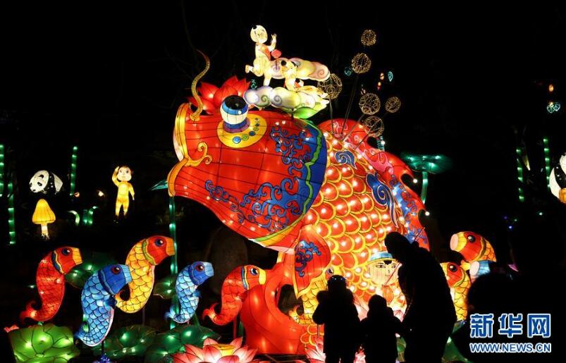 2月16日,游人在河北省霸州市胜芳镇元宵灯展上赏灯。 元宵节临近,各地张灯结彩、火树银花,营造出浓浓的节日氛围。 新华社发(杜岩龙 摄)