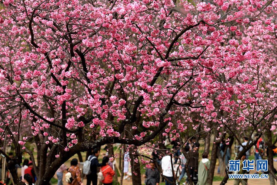 近日,云南省昆明市迎来樱花盛开的时节。昆明圆通山公园的数千株樱花灿烂绽放,吸引了市民和游客前来观花赏景。 新华社记者 蔺以光 摄