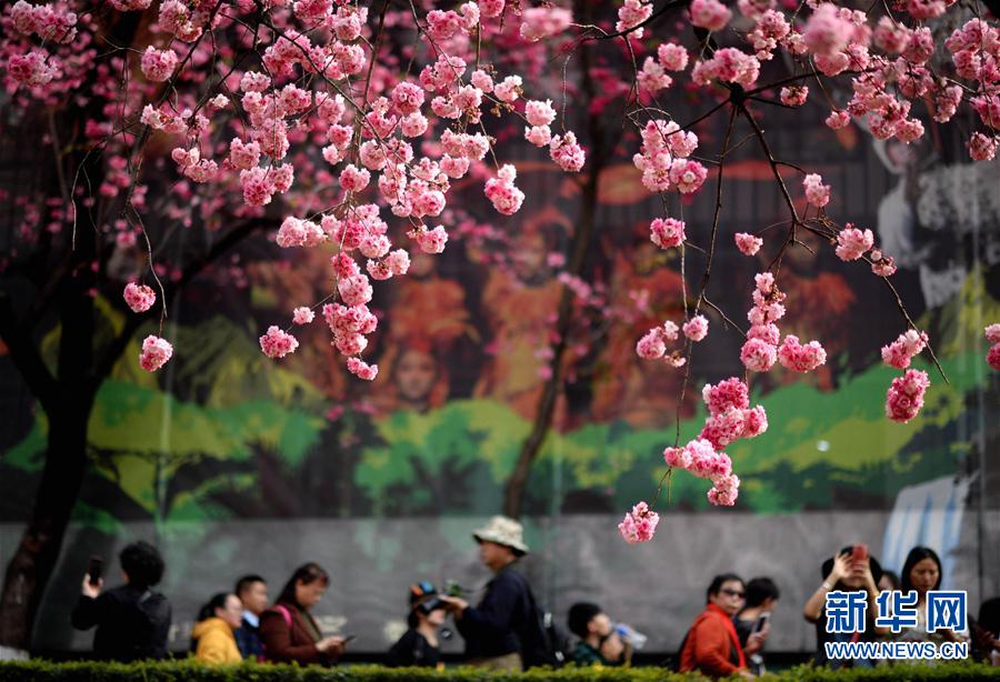 游人在昆明圆通山公园观赏盛开的樱花(3月16日摄)
