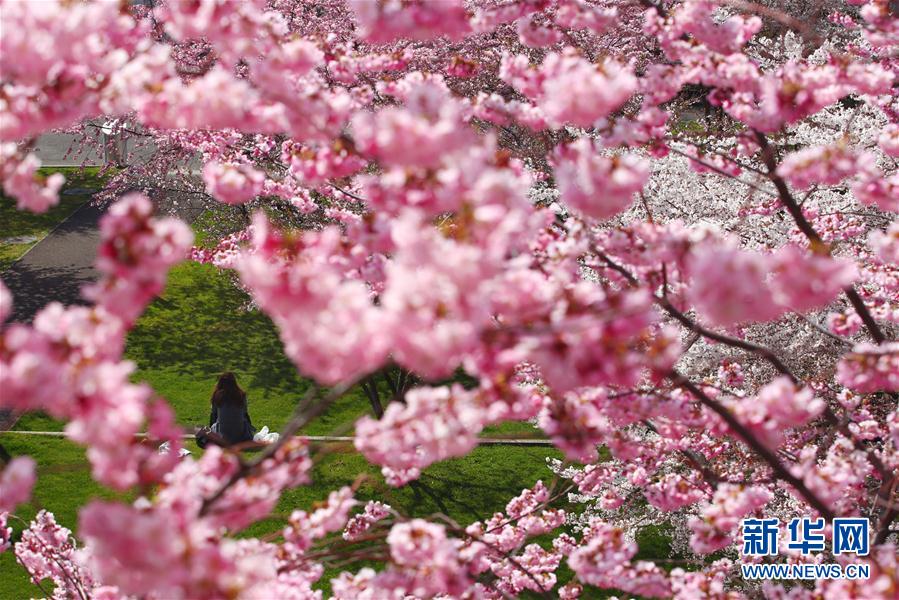 3月25日,在瑞士洛桑,一名女子坐在樱花树间。 新华社/路透