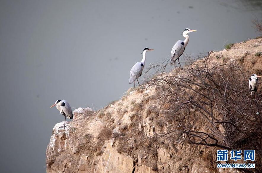 在山西平陆黄河湿地好汉坡段,几只苍鹭在崖壁上筑巢栖息(4月10日摄)。 连日来,随着气温回暖,数百只苍鹭来到位于山西省南部的平陆县黄河湿地,它们在黄河岸边的崖壁上筑巢安家,形成了春日里一道靓丽的风景线。 新华社发