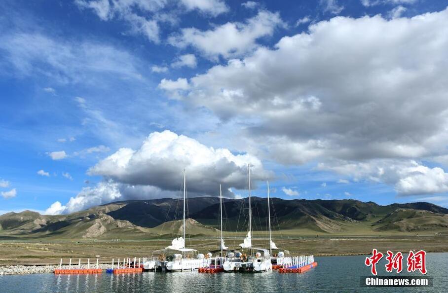 进入六月中旬,新疆赛里木湖景区内,湛蓝的湖水与天一色,同远处山峰相映成画,景色迷人,吸引游客来此游玩、避暑。赛里木湖位于天山山脉,湖面海拔两千多米,水域面积450多平方公里,是新疆海拔最高、面积最大的高山湖泊。图为6月15日,观光船停泊湖边码头。中新社记者 张兴龙 摄