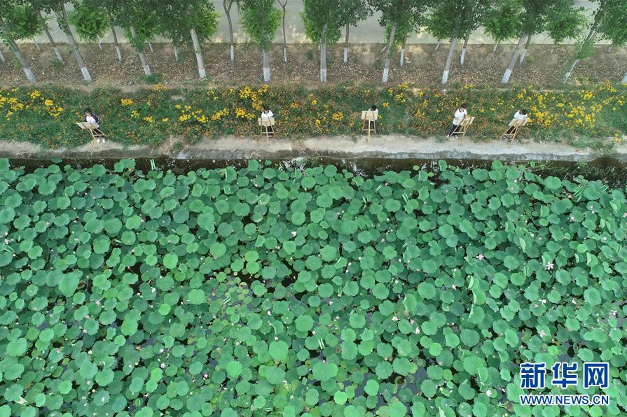 6月27日,河北省威县实验中学学生在威县固献乡前葛寨二村荷塘旁写生。近日,河北省威县固献乡前葛寨二村500多亩荷花竞相绽放,吸引游人前来赏荷、写生。 新华社记者 牟宇 摄 6月27日,河北省威县实验中学学生在威县固献乡前葛寨二村荷塘旁写生。新华社记者 牟宇 摄 6月27日,河北省威县实验中学学生在威县固献乡前葛寨二村荷塘旁写生。新华社记者 牟宇 摄