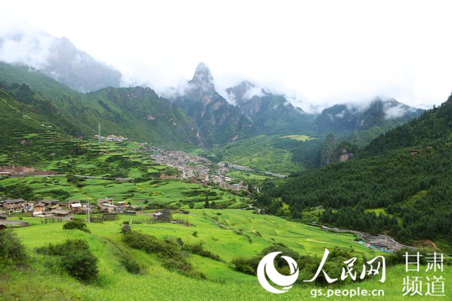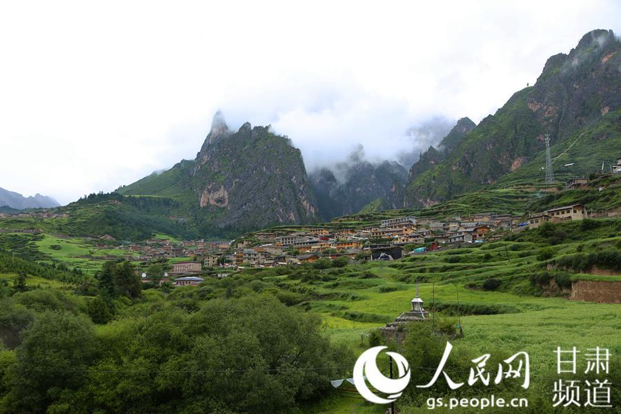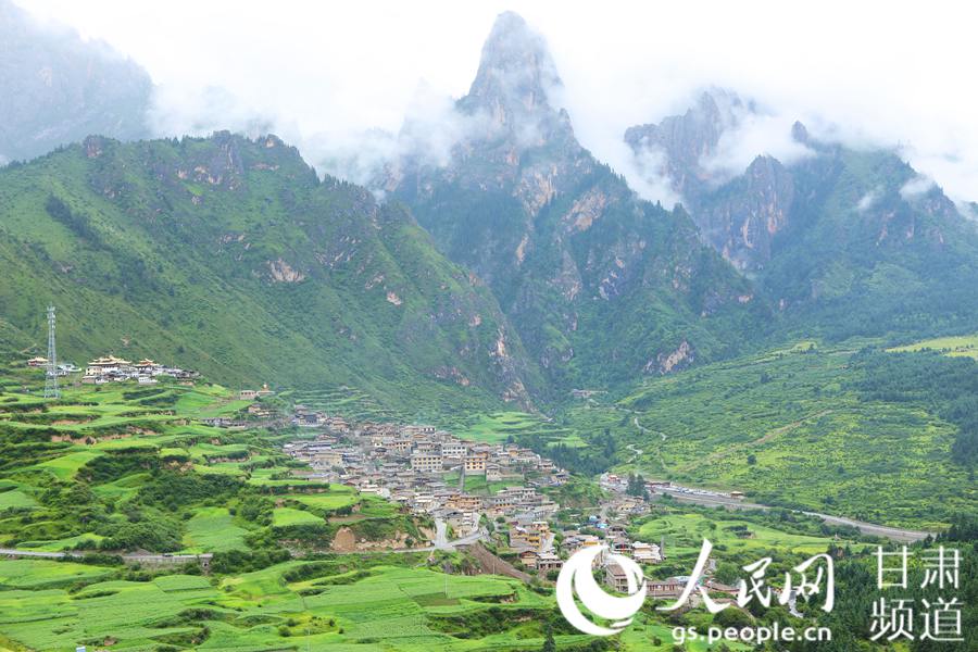 扎尕那,位于甘肃省甘南藏族自治州迭部县西北30余公里处的益哇乡,藏语意为“石匣子”。扎尕那整个景区平均海拔在3000米以上,群山环抱,松柏成林,藏式村落掩映其中,构成独特的人文和自然景观。藏寨内游牧、农耕、狩猎和樵采等多种生产活动合理搭配和互补融合,成为甘南藏族自治州一张独特的旅游名片,吸引国内外游客前来观光体验。图为近日雨后拍摄的扎尕那,山势奇峻、云雾缭绕、宛如仙境。
