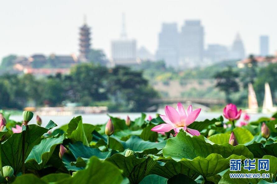 这是7月23日在南京玄武湖公园拍摄的荷花。 新华社记者 李博 摄