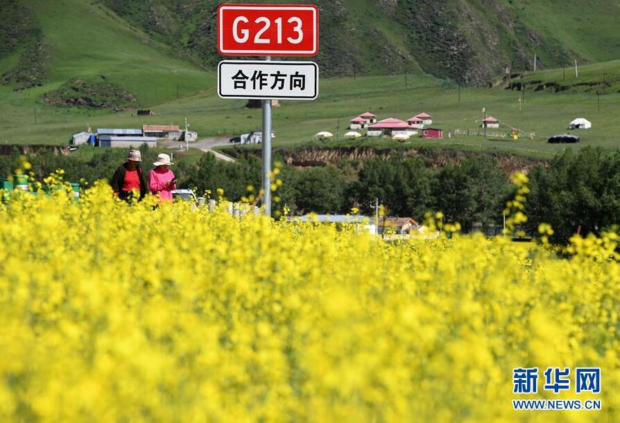 盛夏时节,位于青藏高原东北部的甘肃省甘南藏族自治州碌曲县油菜花田美不胜收。